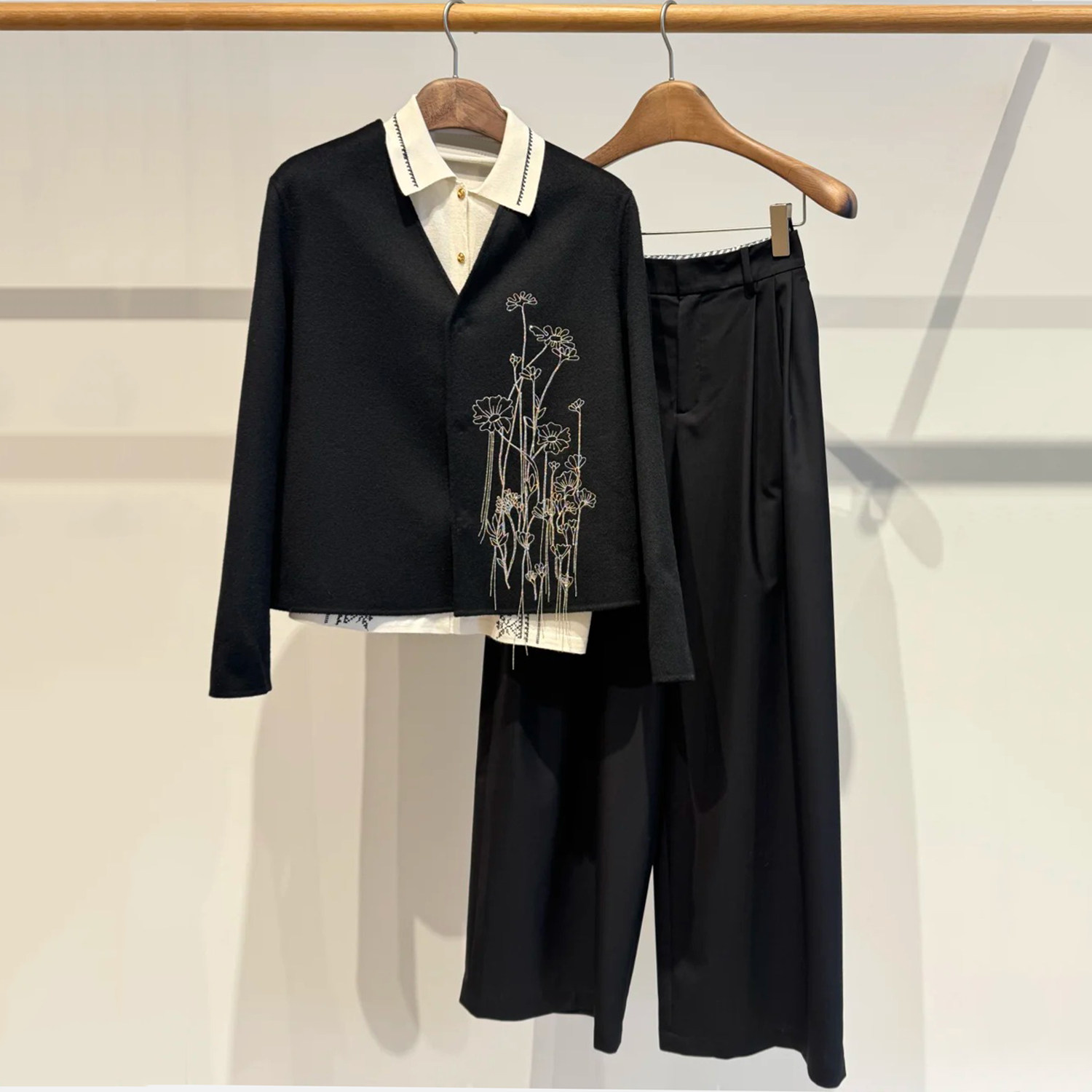首页> 女装> 深圳南油高端女装2026春新款设计感刺绣撞色翻领长袖气质开衫外套