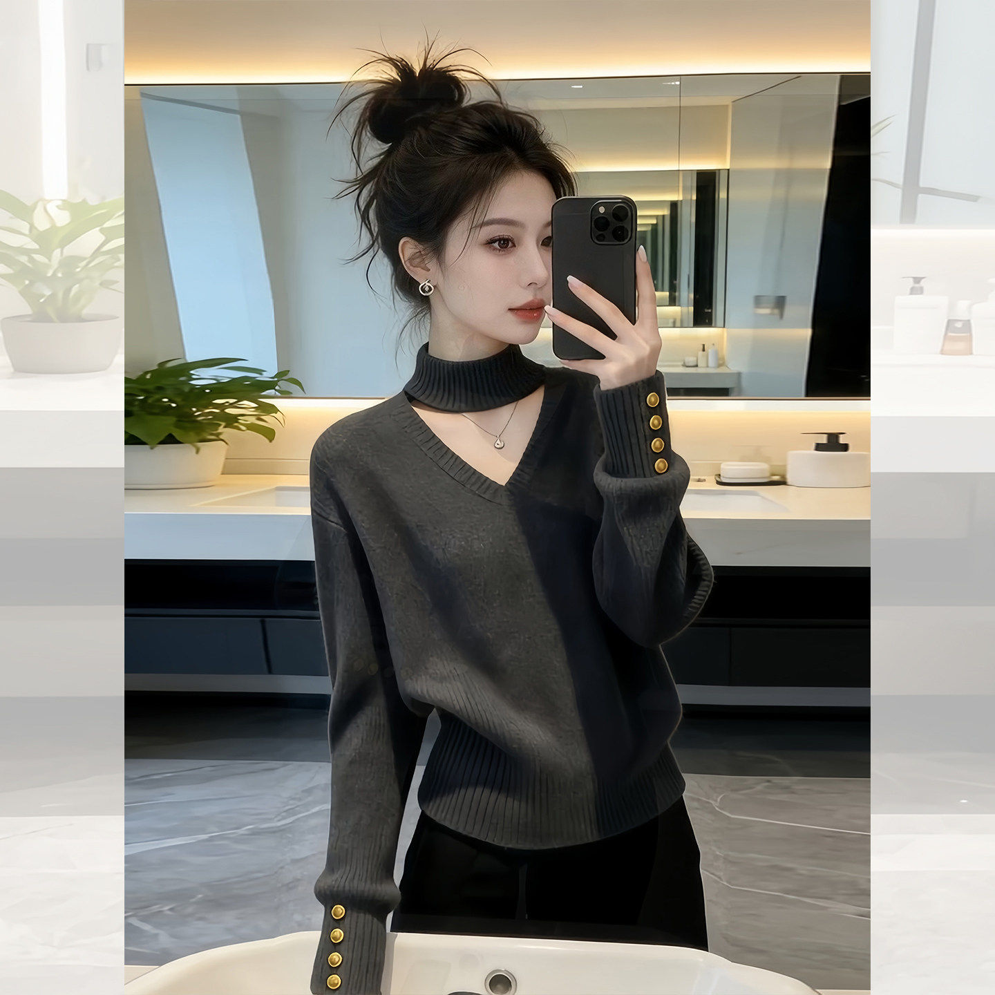 深灰色挂脖V领打底内搭可外穿针织衫女2025秋冬季设计感韩系上衣
