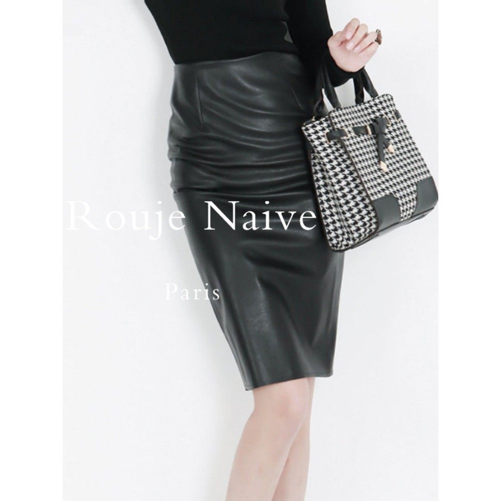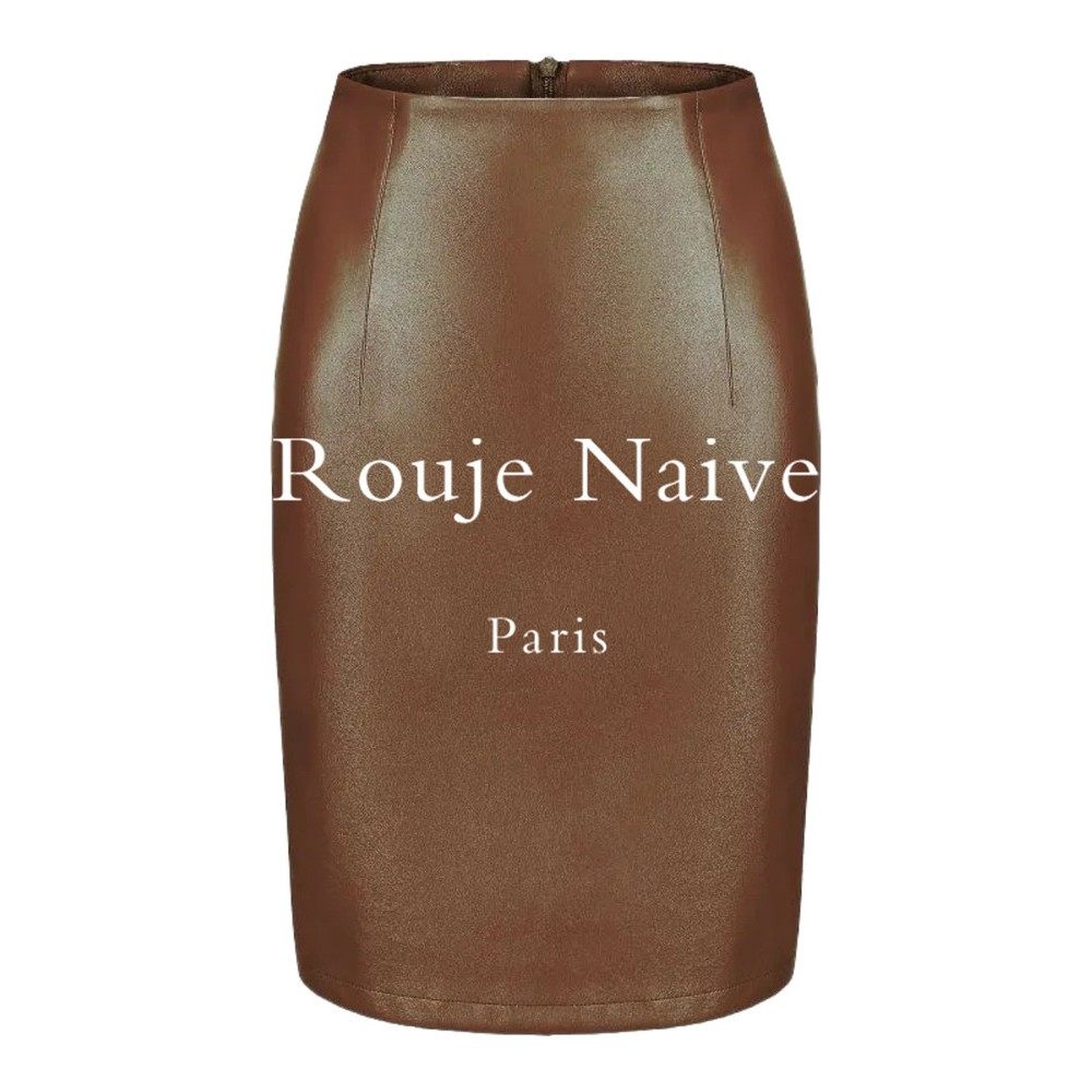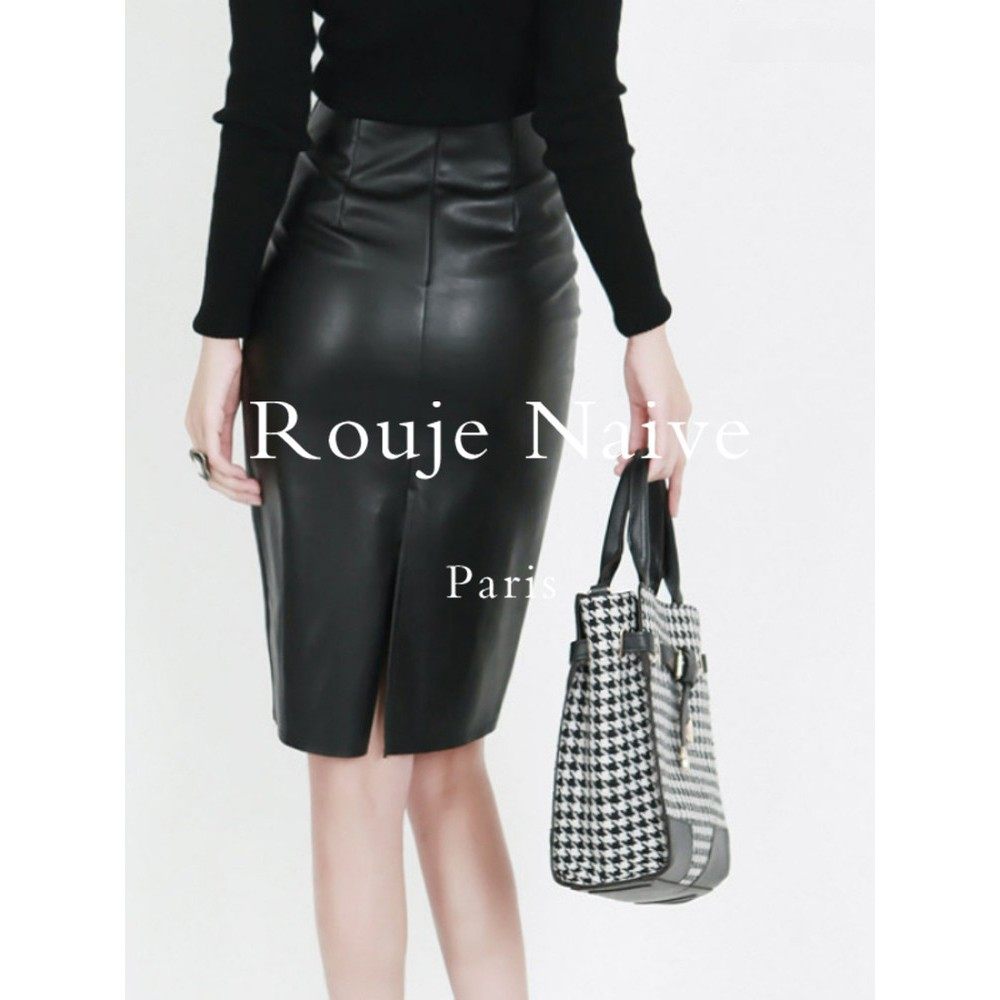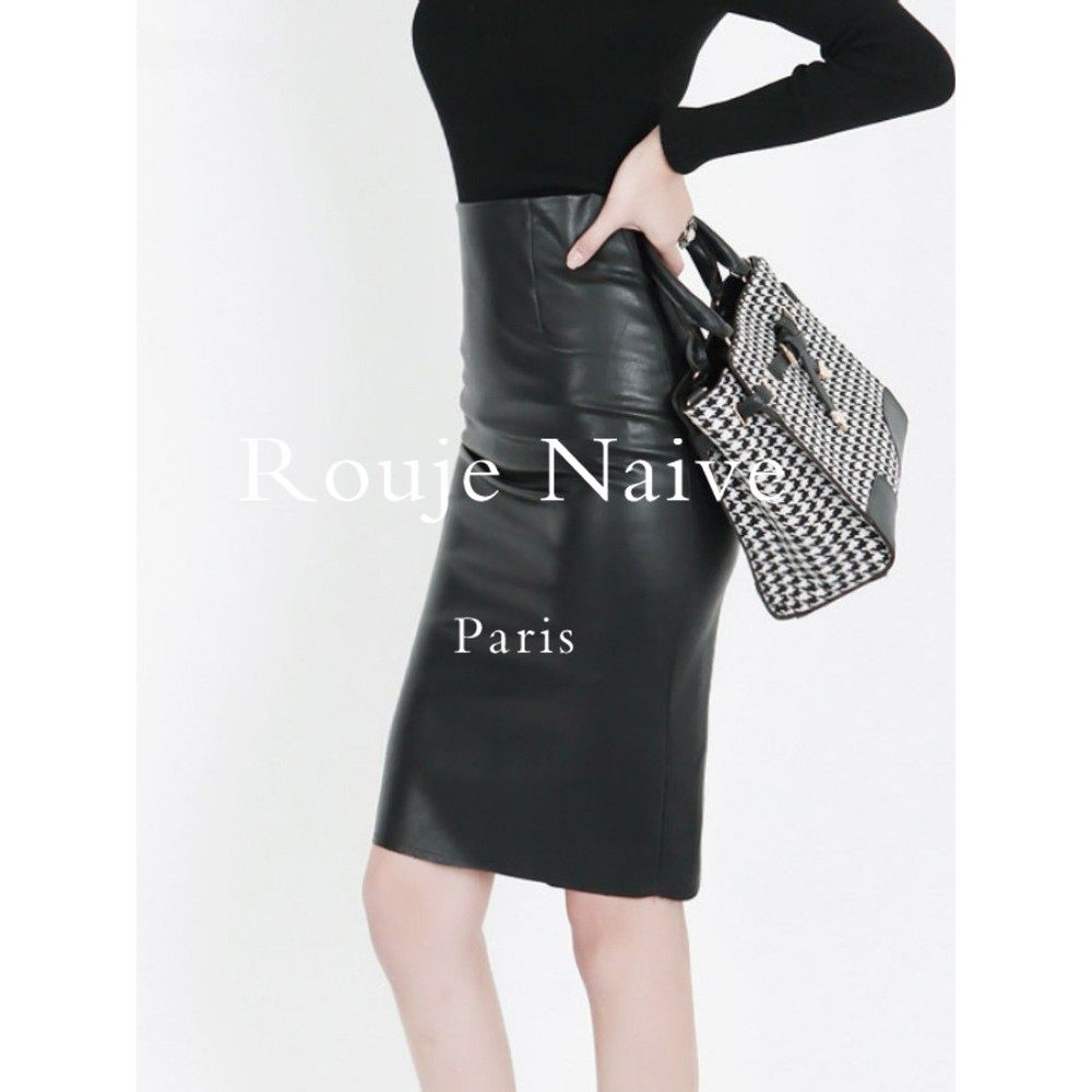 Rouje Naive新款皮裙半身裙女高腰包臀裙一步裙显瘦黑色气质中裙