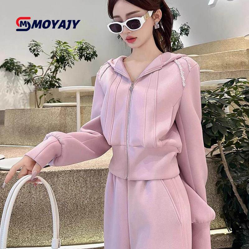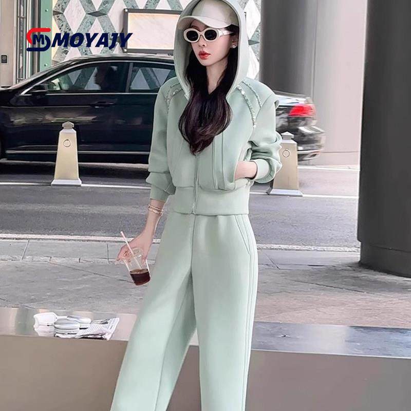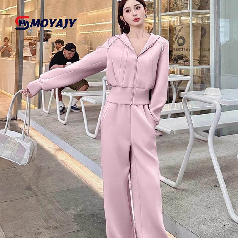 MOYAJY品牌港风休闲运动套装女春秋显瘦高级感卫衣阔腿裤两件套