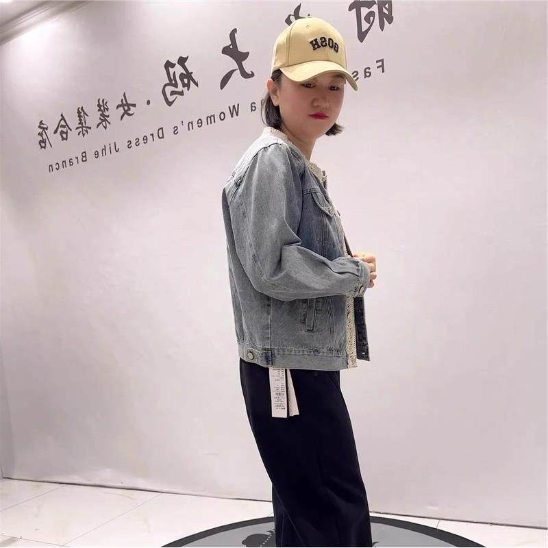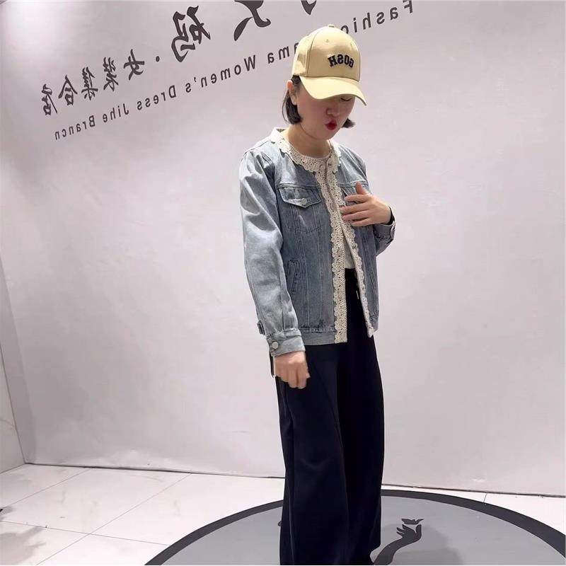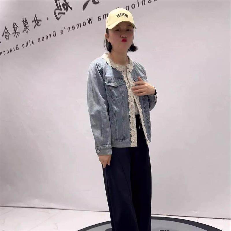 针丝缘大码女装2026春装胖mm外套4088圆领牛仔外套减龄显瘦开衫