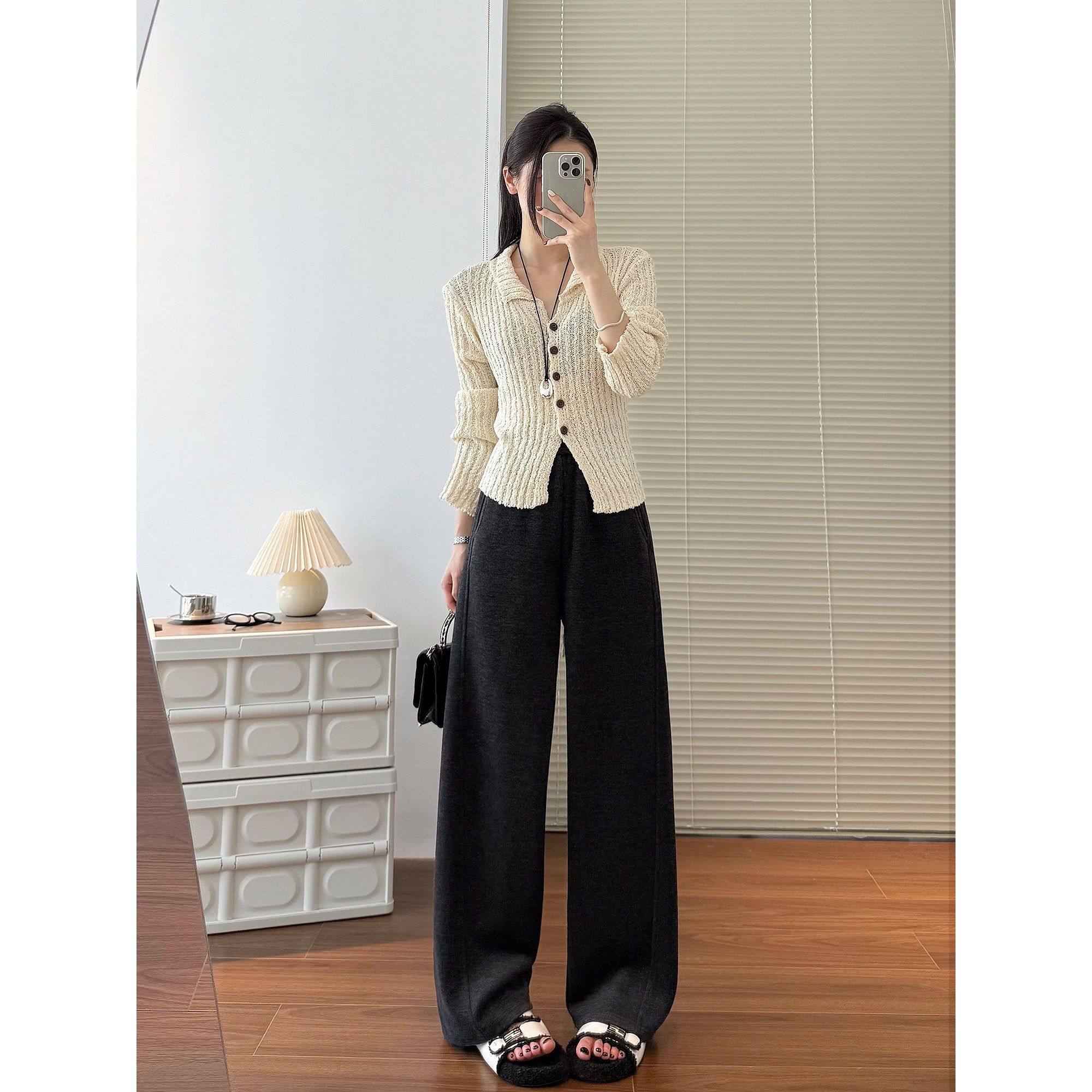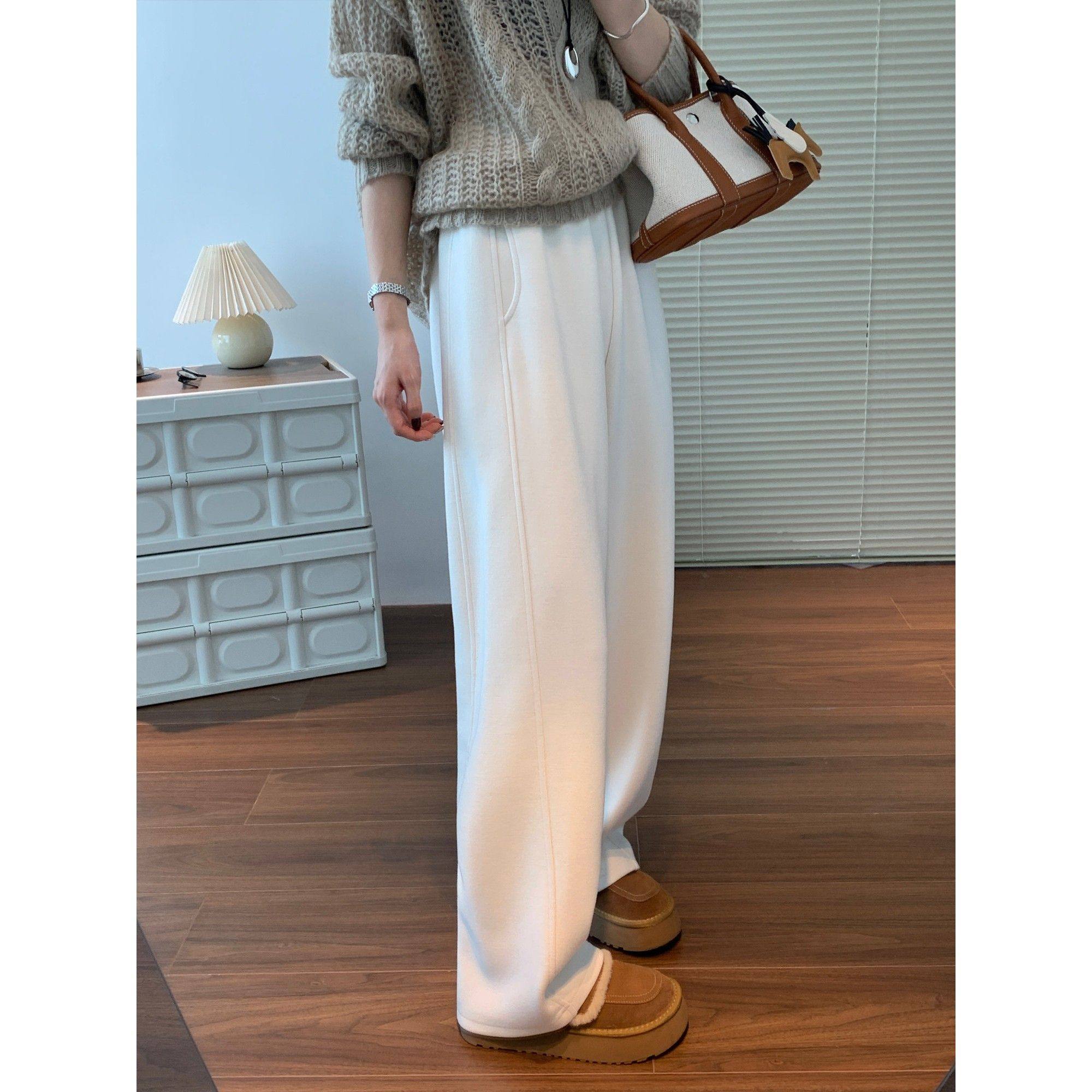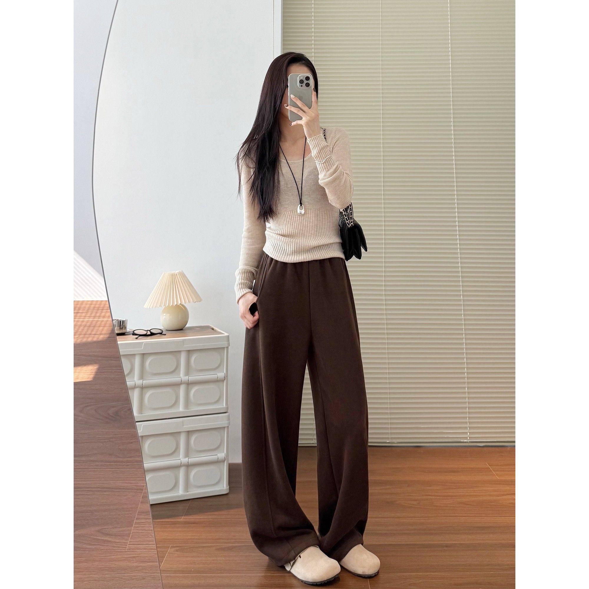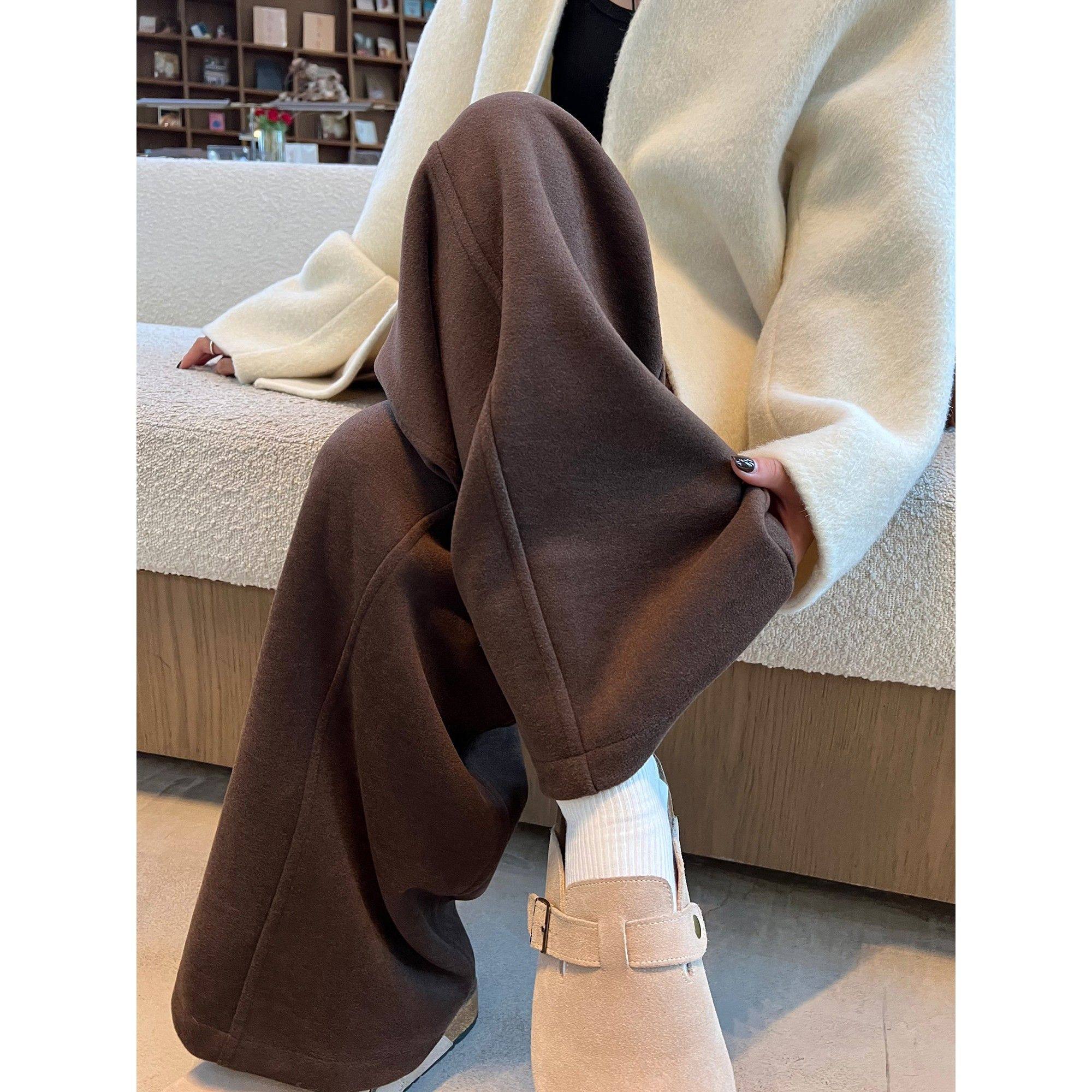 醋酸羊毛休闲卫裤女秋冬新款棕咖色运动直筒加厚弯刀糯米阔腿裤子