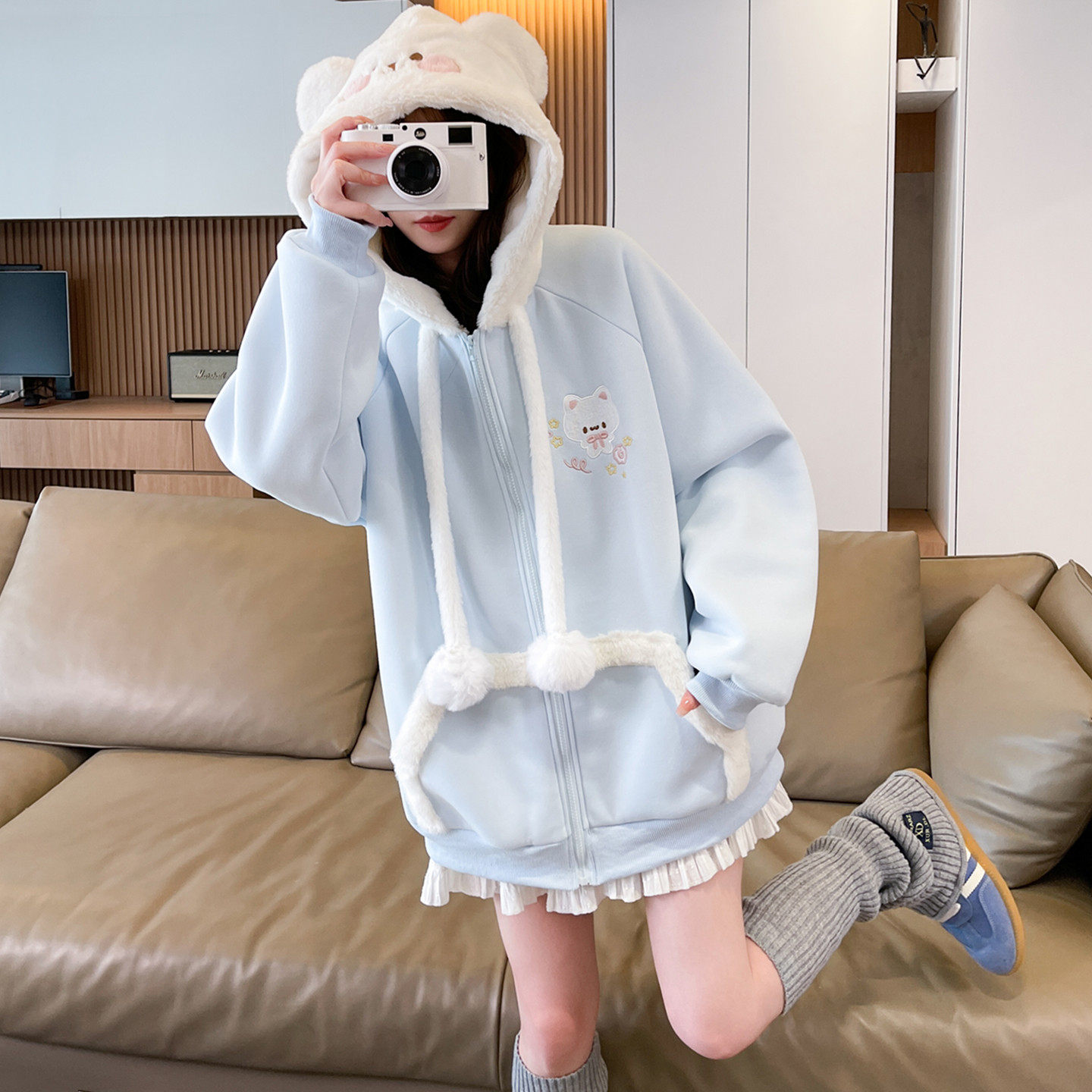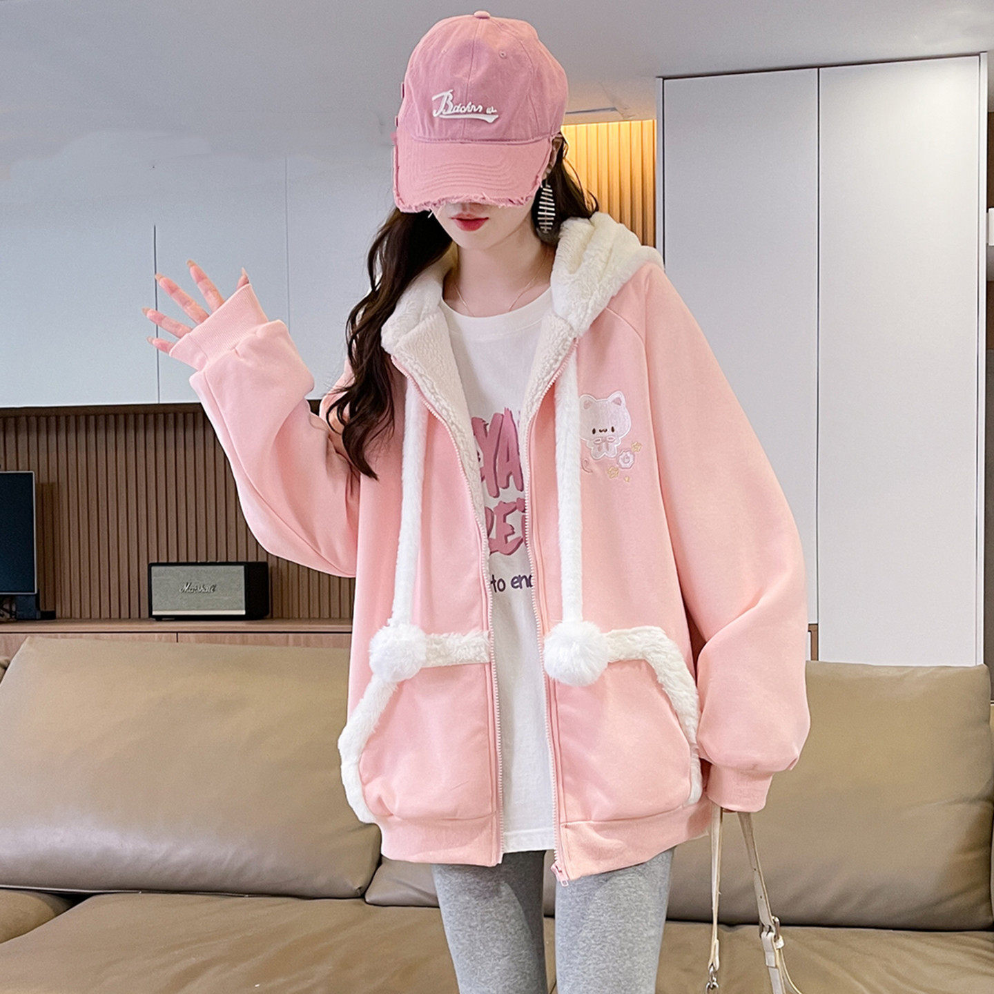超好看羊羔毛卫衣外套女秋冬季加绒加厚棒球服初高中学生大童棉服