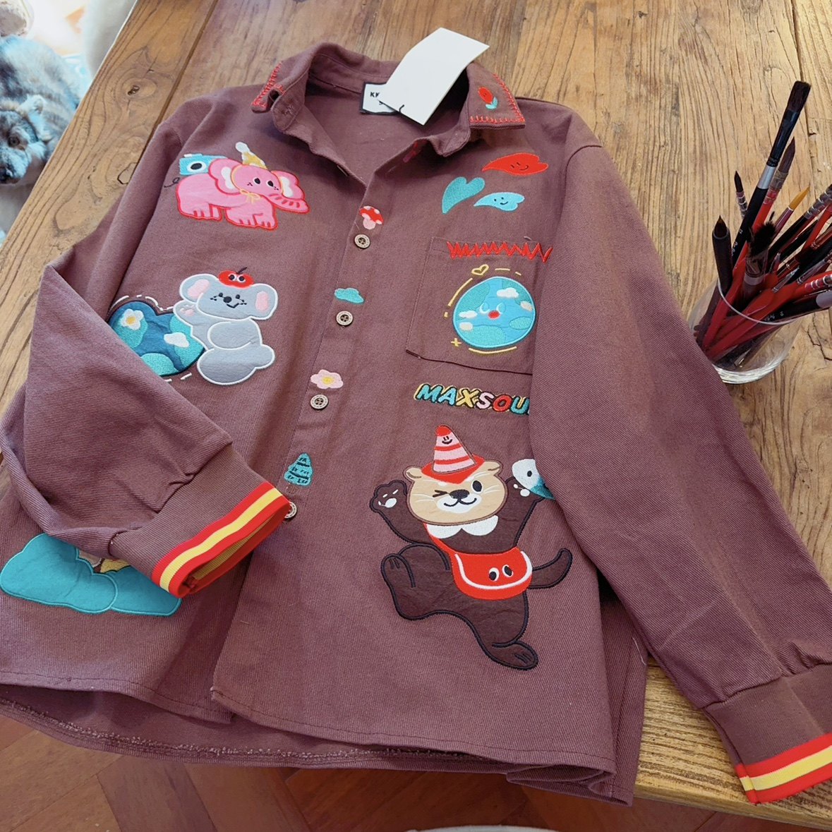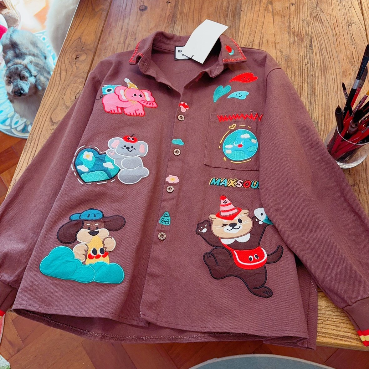 店主闲置 可爱复古刺绣提花 卡通防风衣衬衫外套
