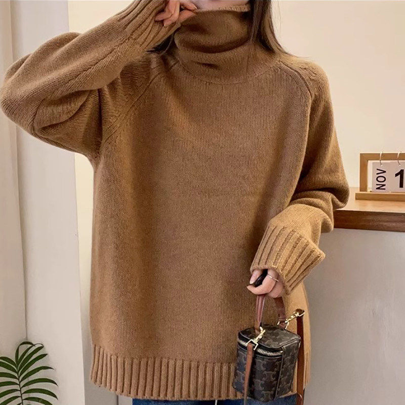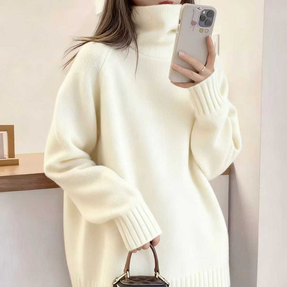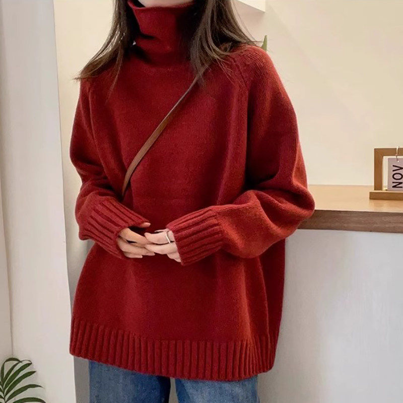 慵懒风毛衣女款2025新款冬季堆堆领宽松大码加厚高领针织打底衫女