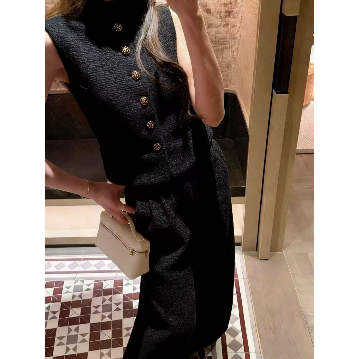 巨好看2026穿搭一整套韩系气质圆领无袖短上衣高腰显瘦垂感休闲裤