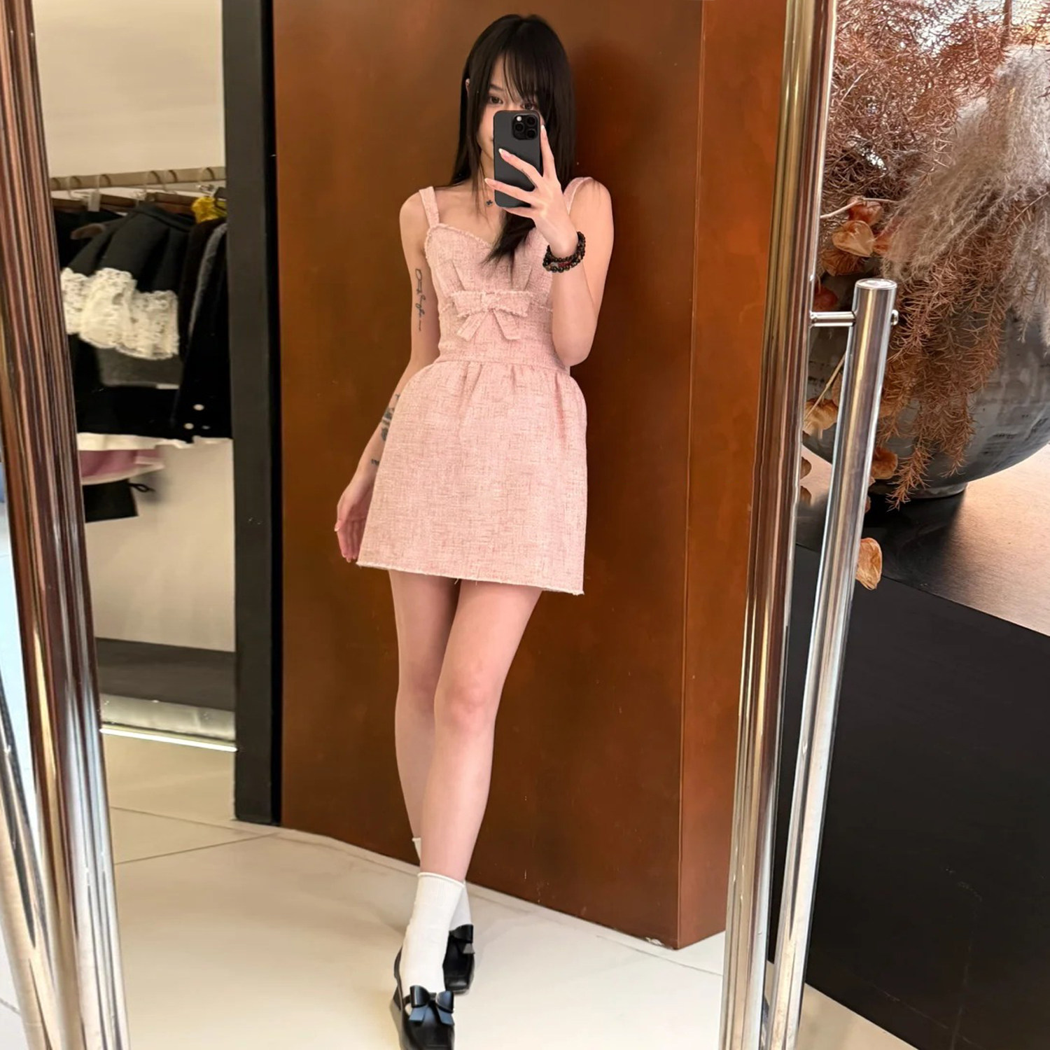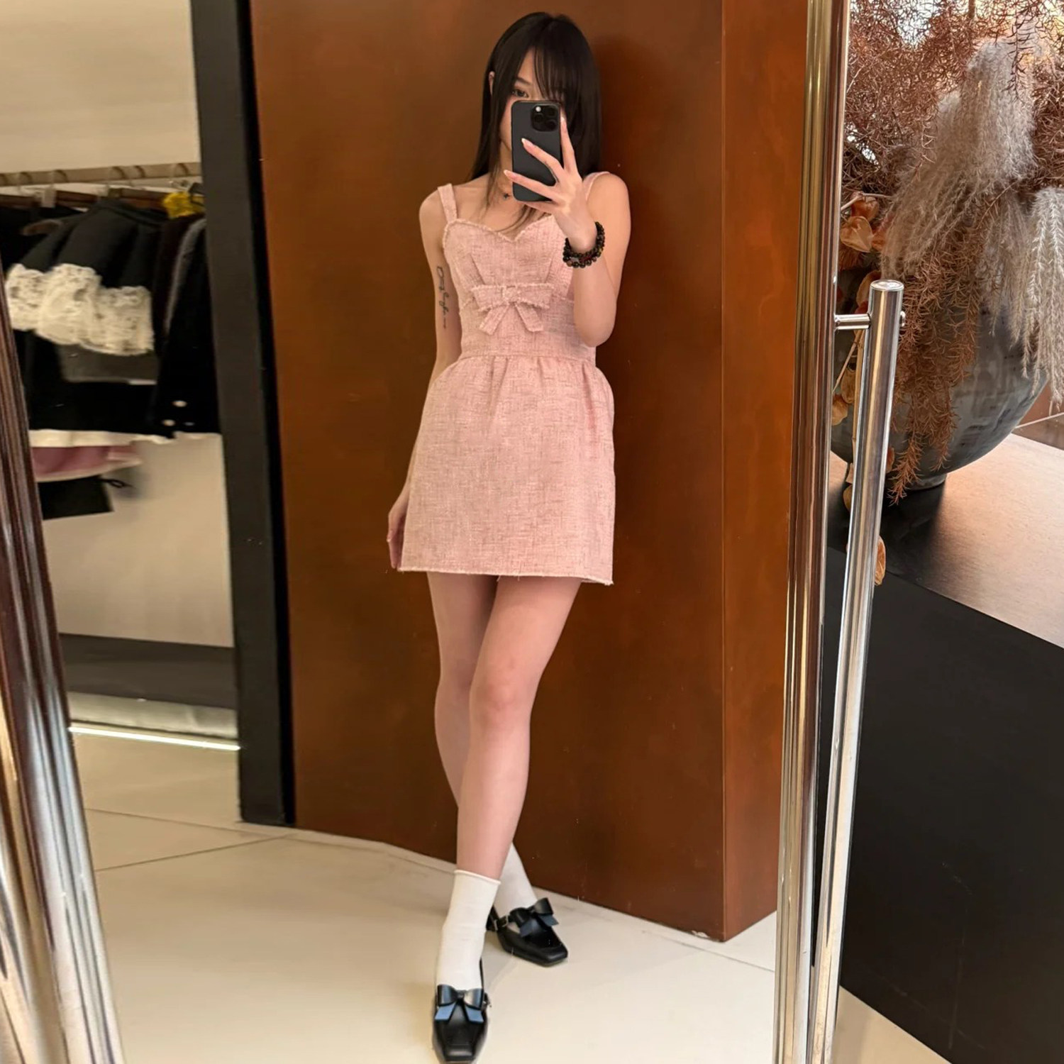 首页> 女装> 2026春季新款法式甜美风潮蝴蝶结优雅时尚小众设计感吊带连衣裙女