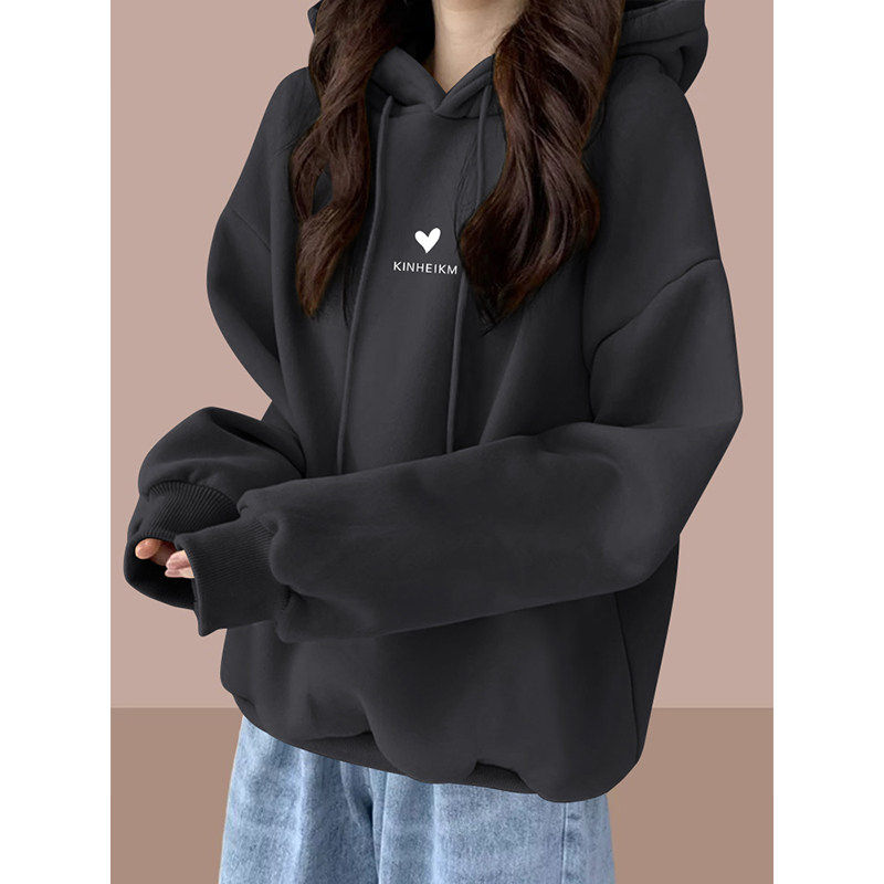美式复古连帽卫衣女秋冬加绒加厚宽松显瘦慵懒风时尚简约通勤上衣