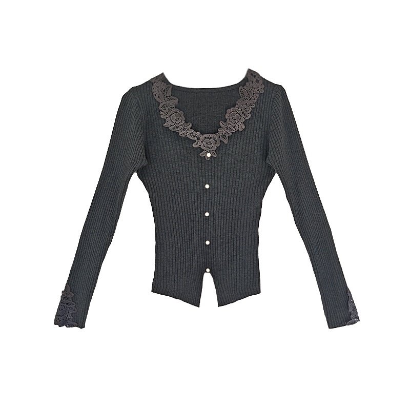 HEART 纸片打底 法式v领花边收腰显瘦针织衫气质感上衣春