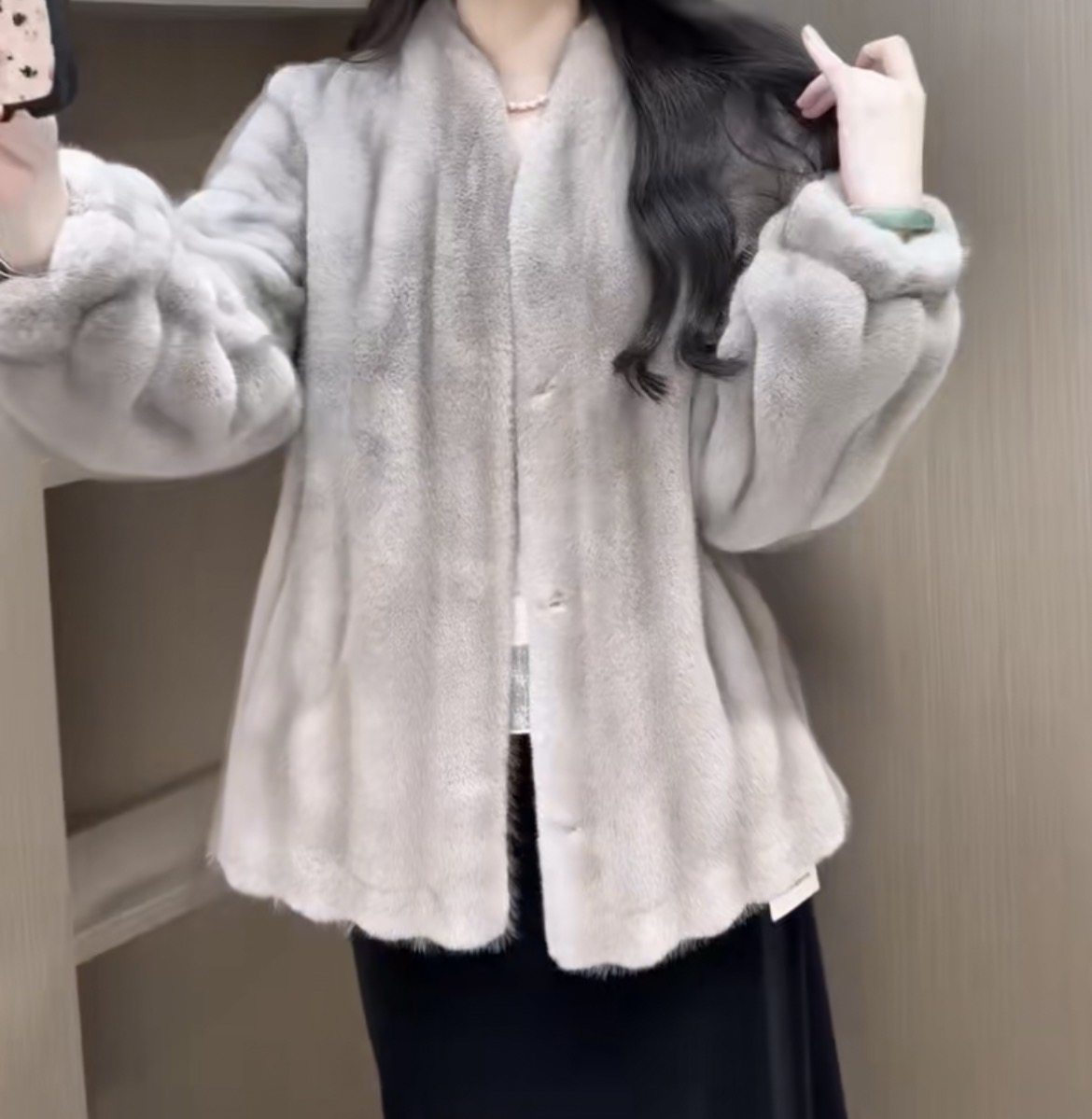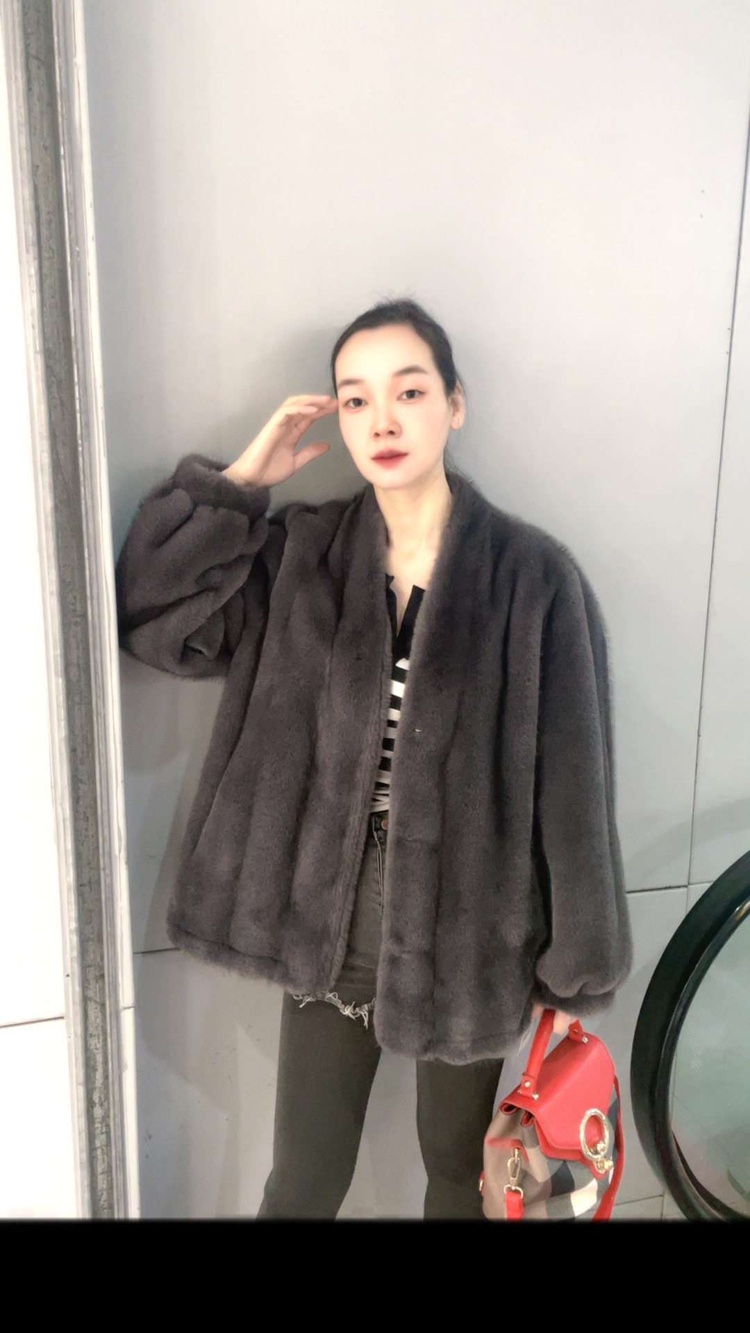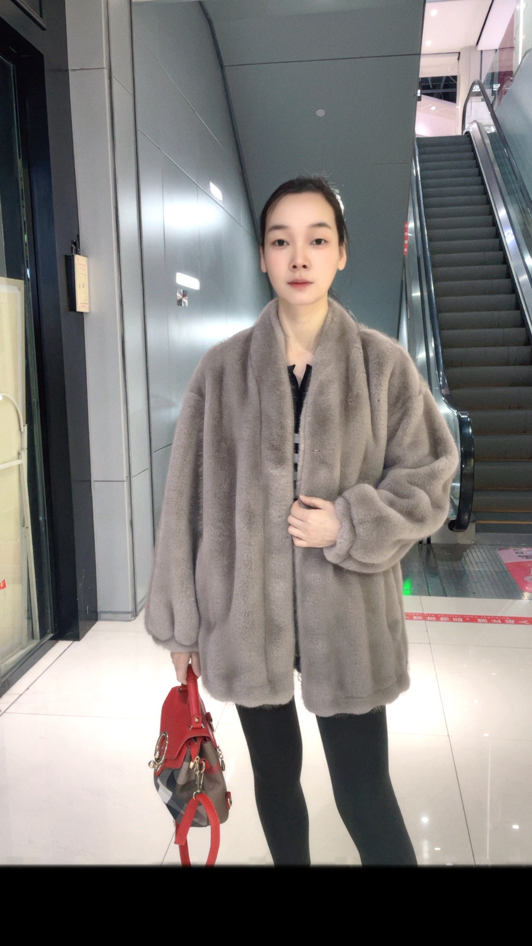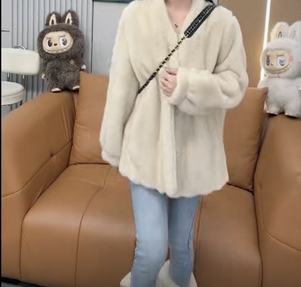 仿水貂环保皮草双色毛网红外套女中长款V领时尚皮毛一体貂皮大衣