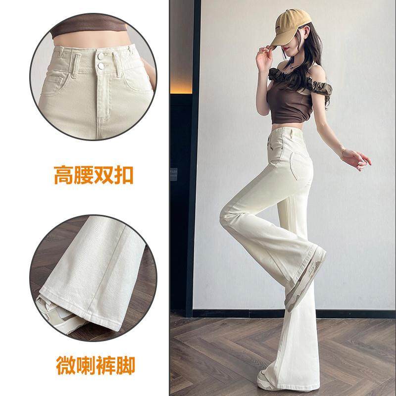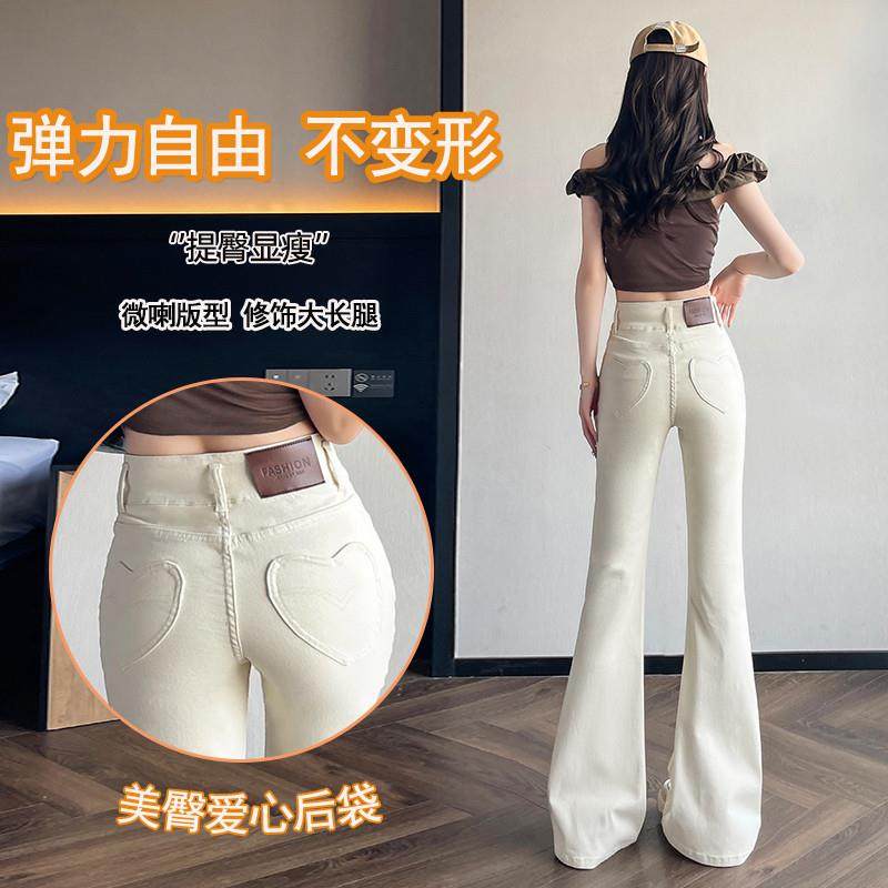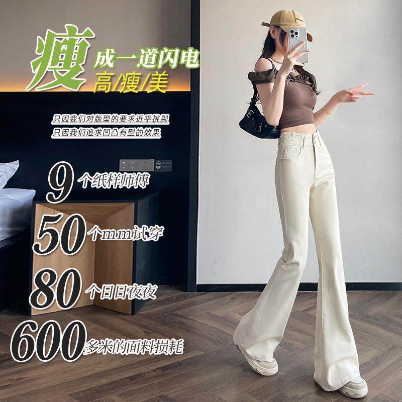 米白色美式蜜桃臀微喇牛仔裤女2025夏薄款设计感弹力提臀马蹄裤子