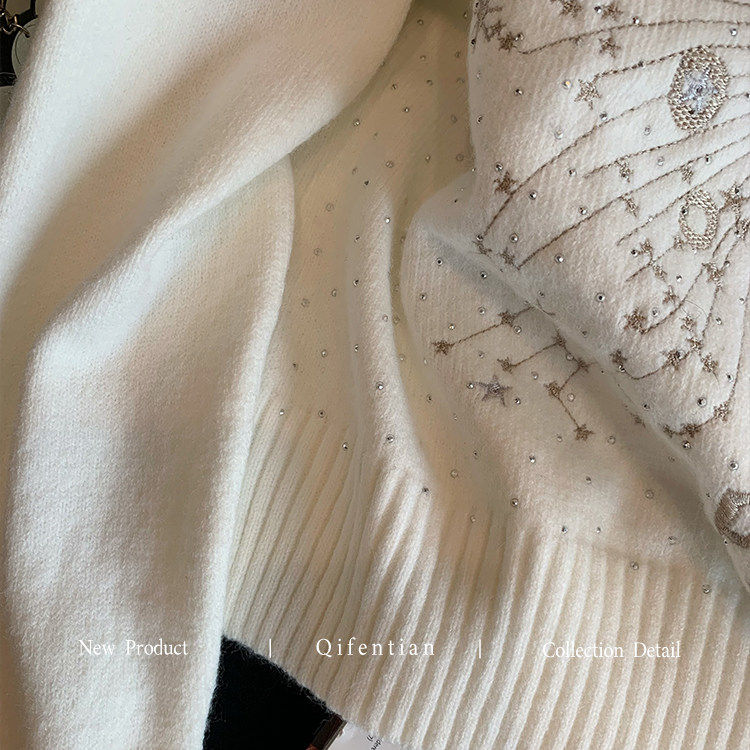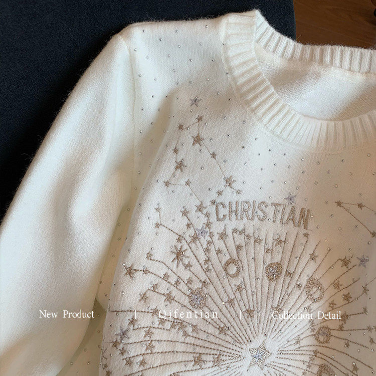 小香风重工星星刺绣烫钻毛衣女2025秋冬新款设计感时髦软糯针织衫