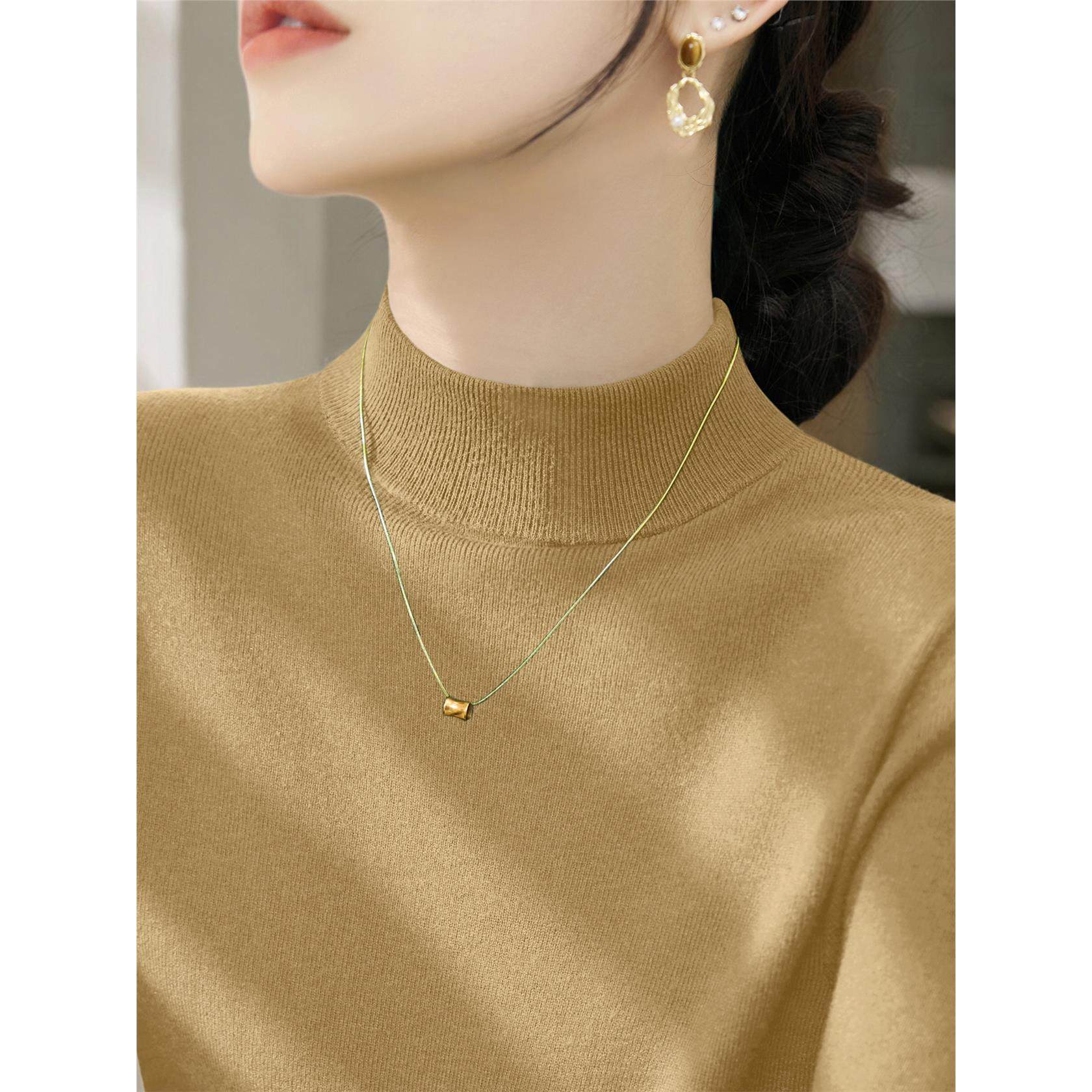 法式时尚冬季长袖韩系气质内搭女装新款套头半高领毛衣显瘦打底衫