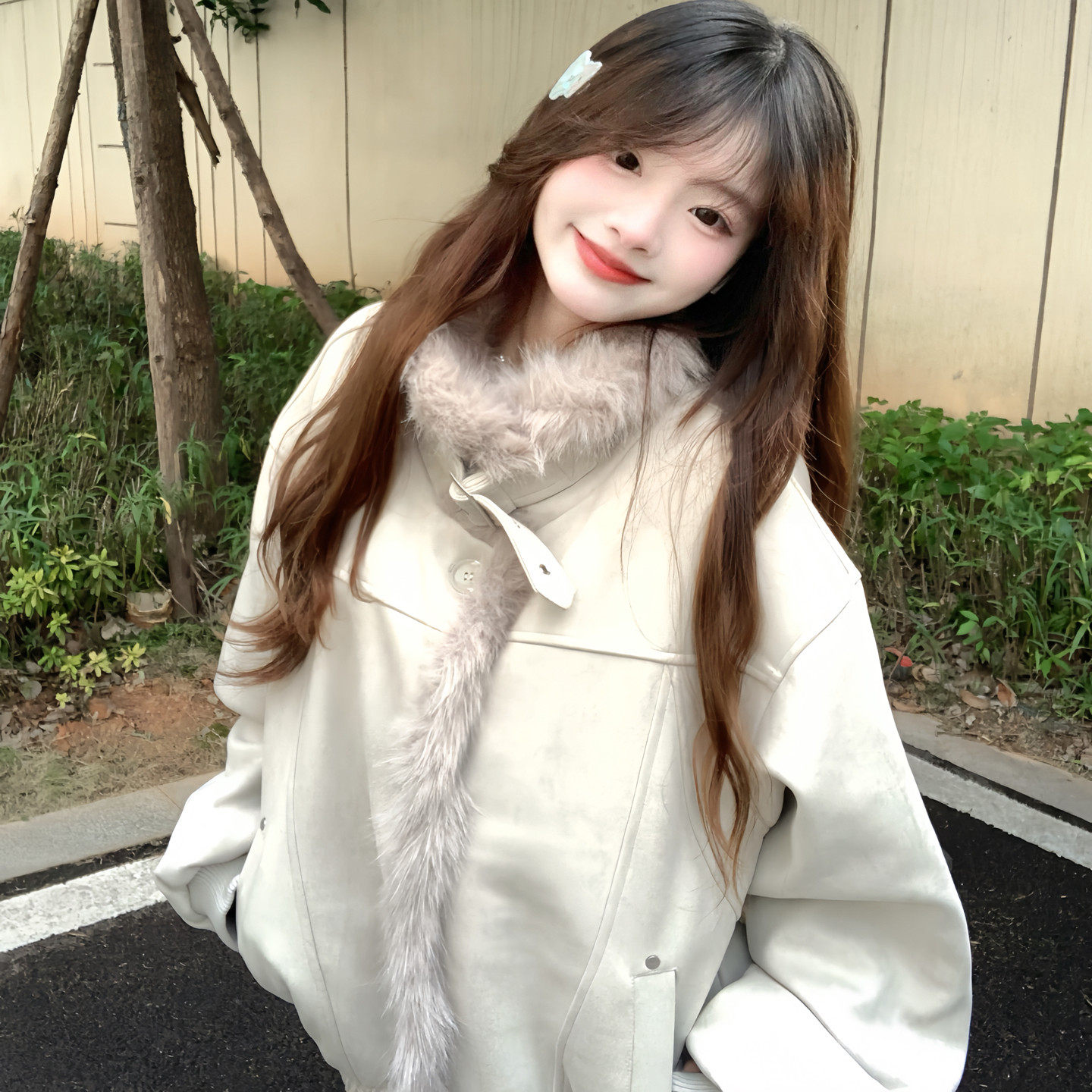 美式麂皮绒座山雕棉服女2025冬季新款毛领设计感加绒加厚棉衣外套