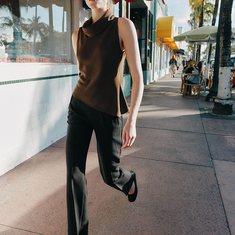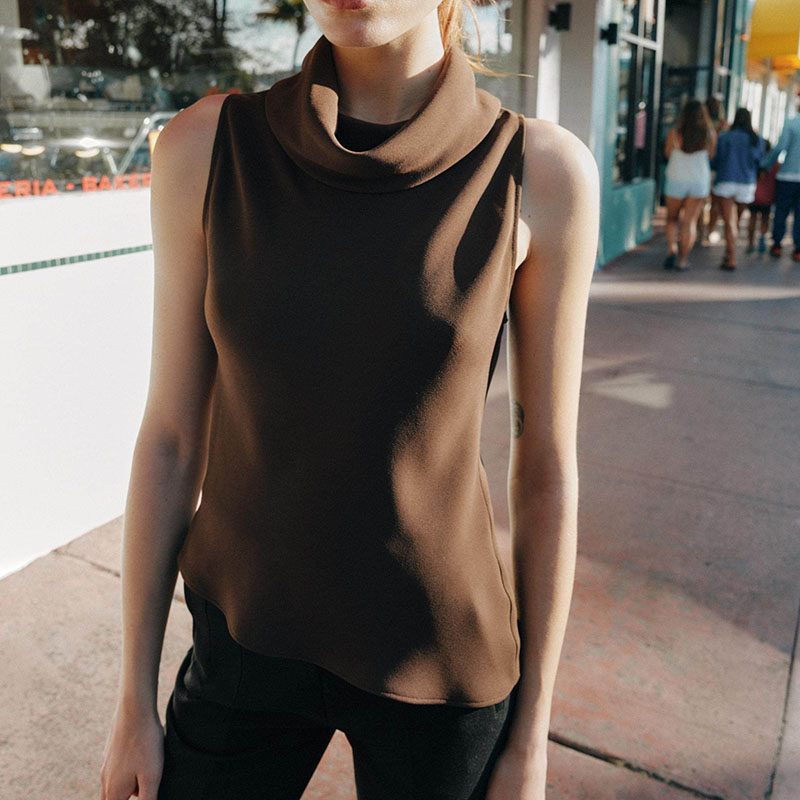 ZA 2026春季新款女装百搭垂性领无袖不对称下摆上衣 2108572 700