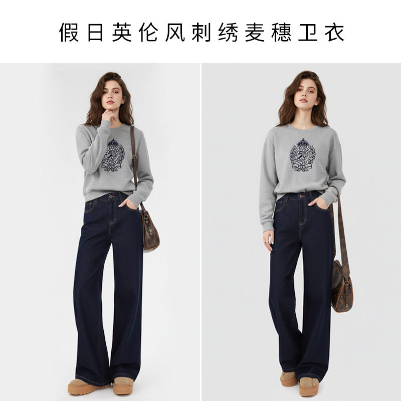 秋冬新款女假日英伦风刺绣麦穗卫衣圆领显瘦韩系慵懒休闲百搭上衣