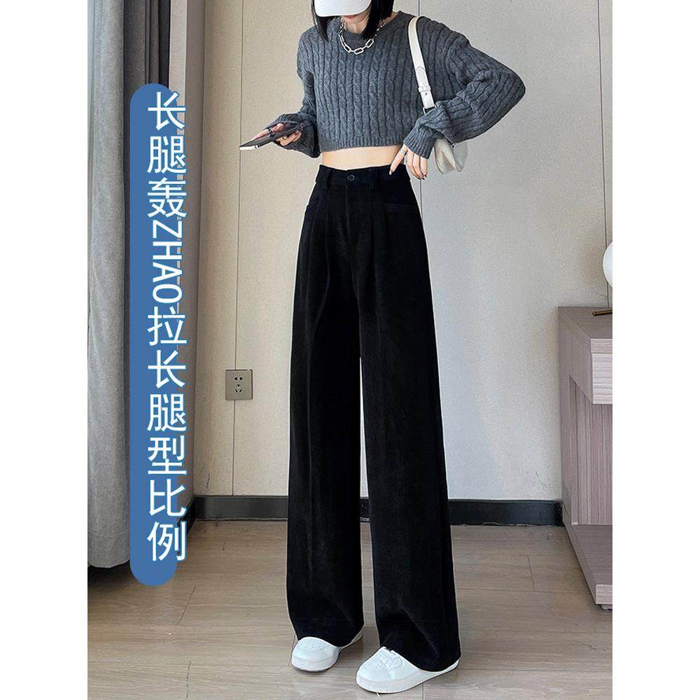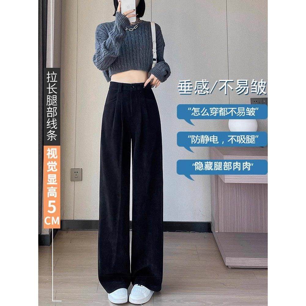 首页> 女装> 加绒加厚阔腿裤女春秋季2025年新款宽松高腰垂感直筒灯芯绒西装裤