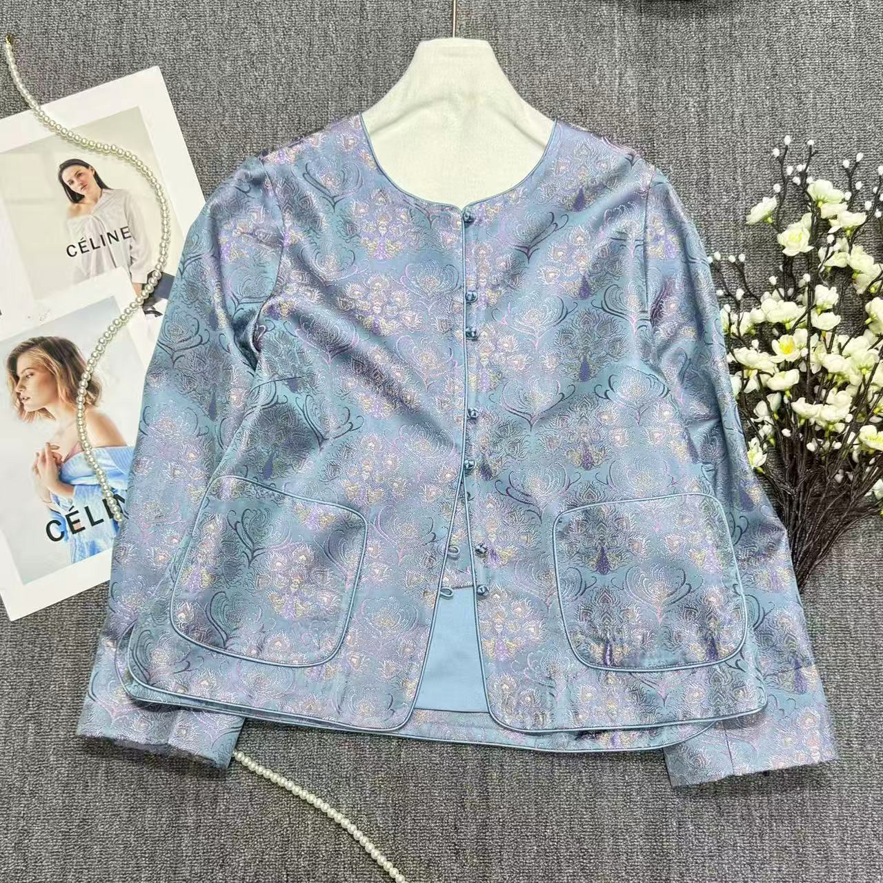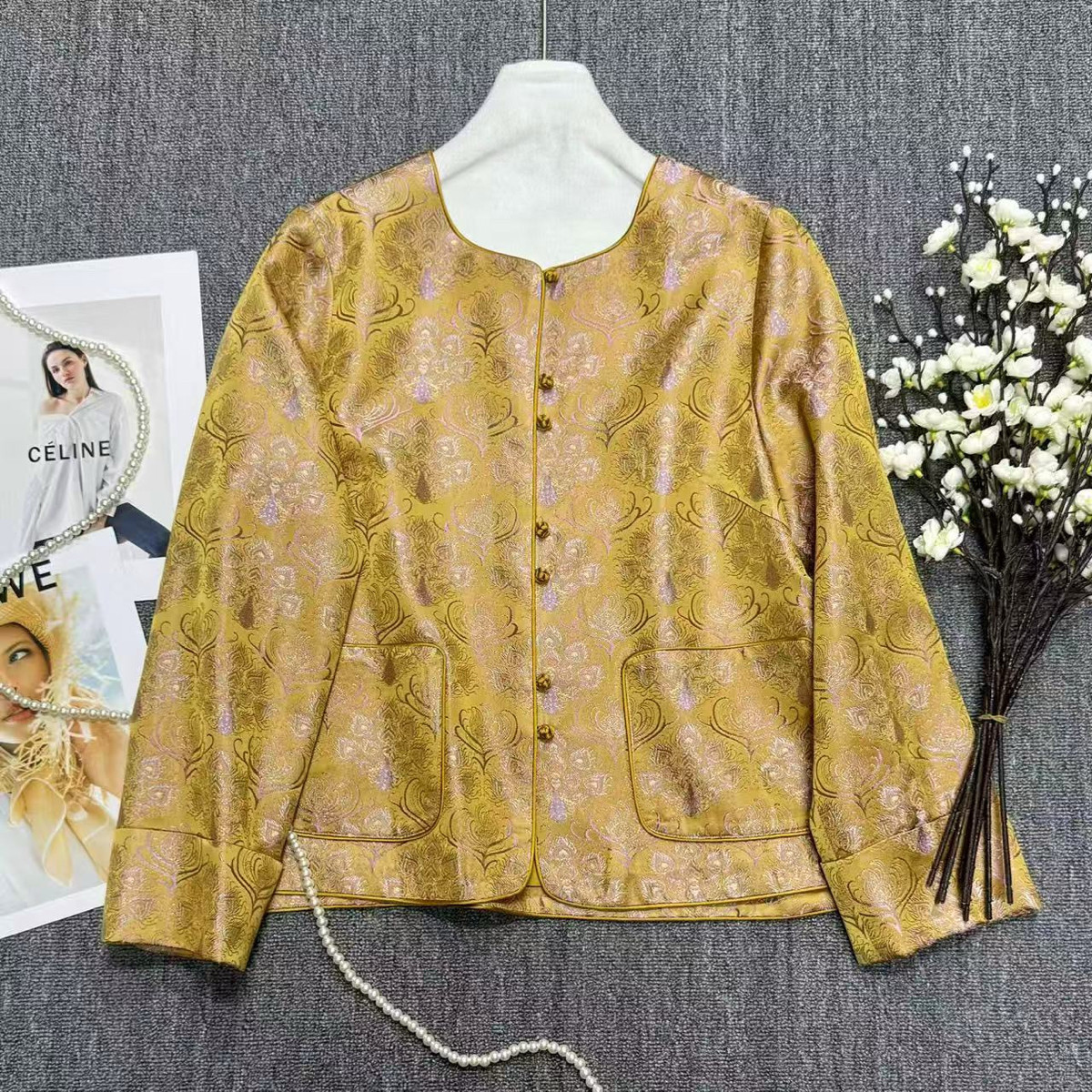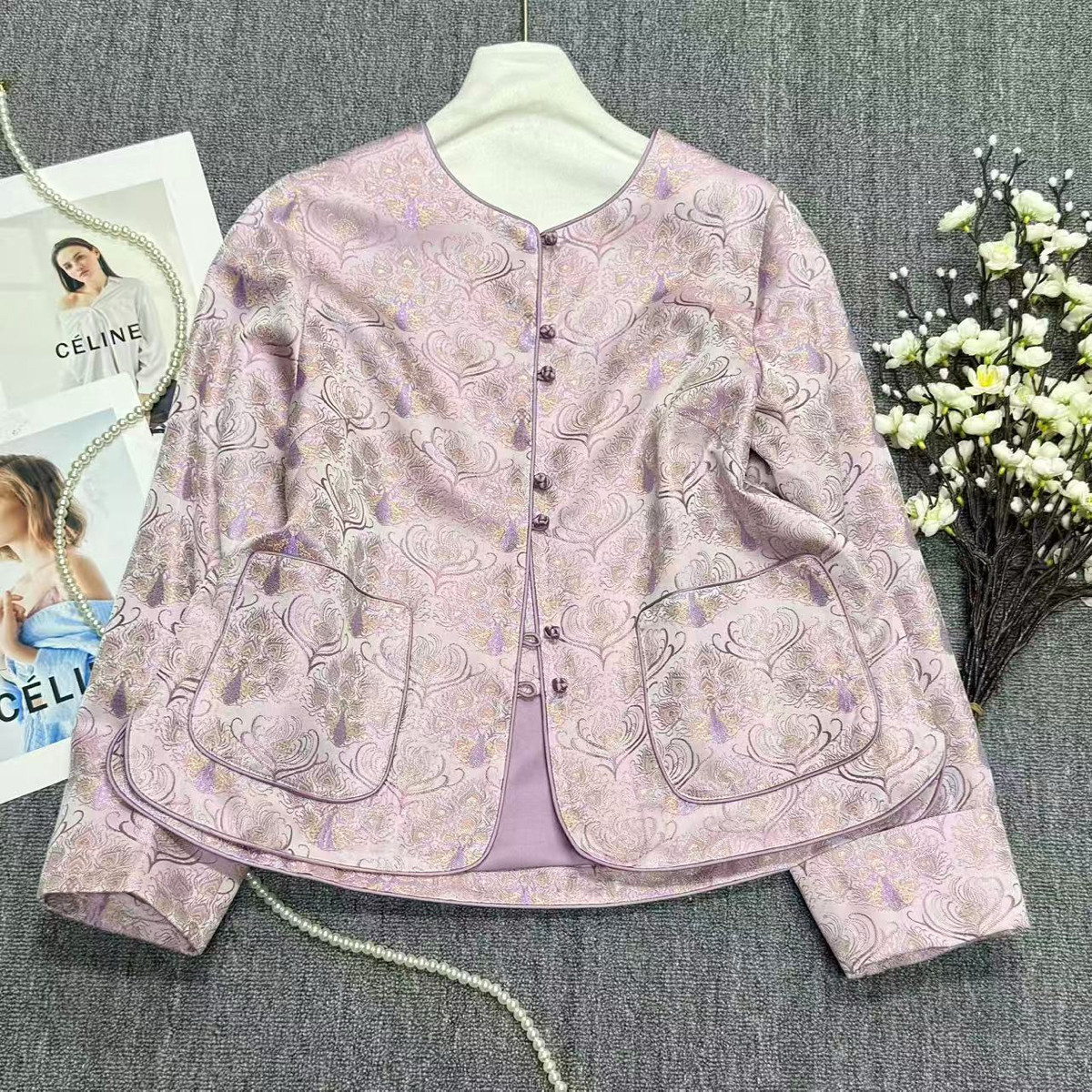 26年早春!大牌老钱新中式桑蚕丝交织提花渐变色调松弛感短外套