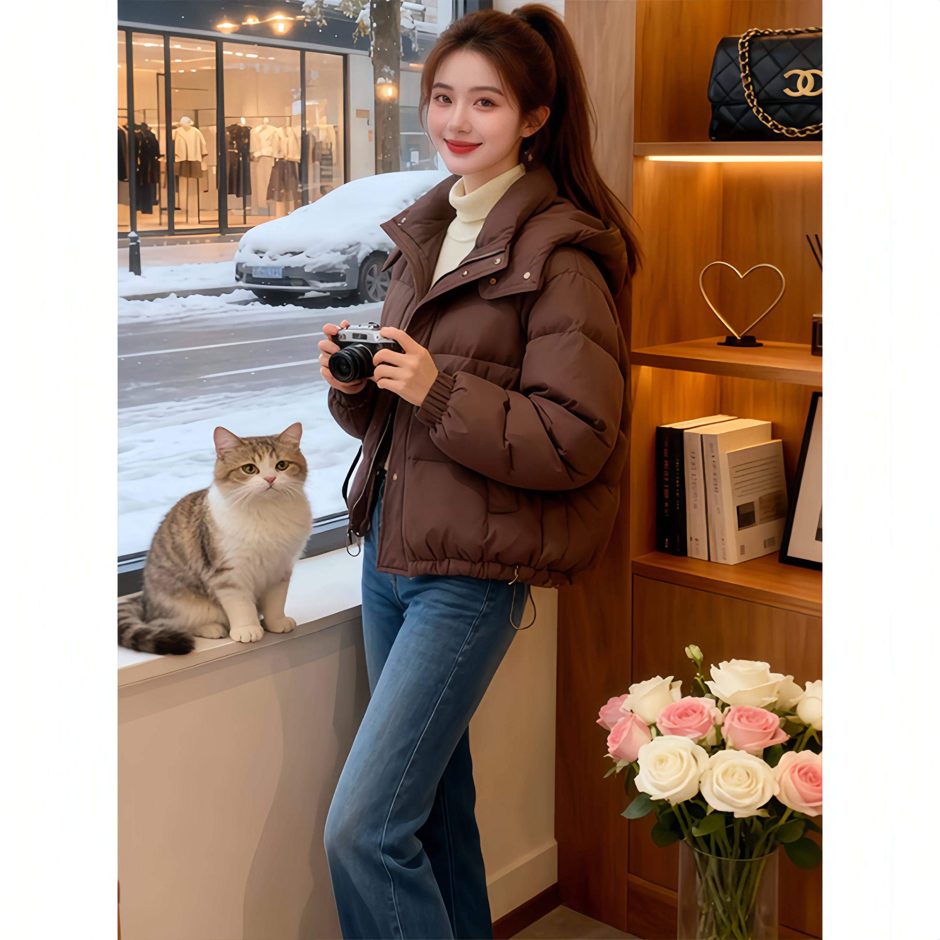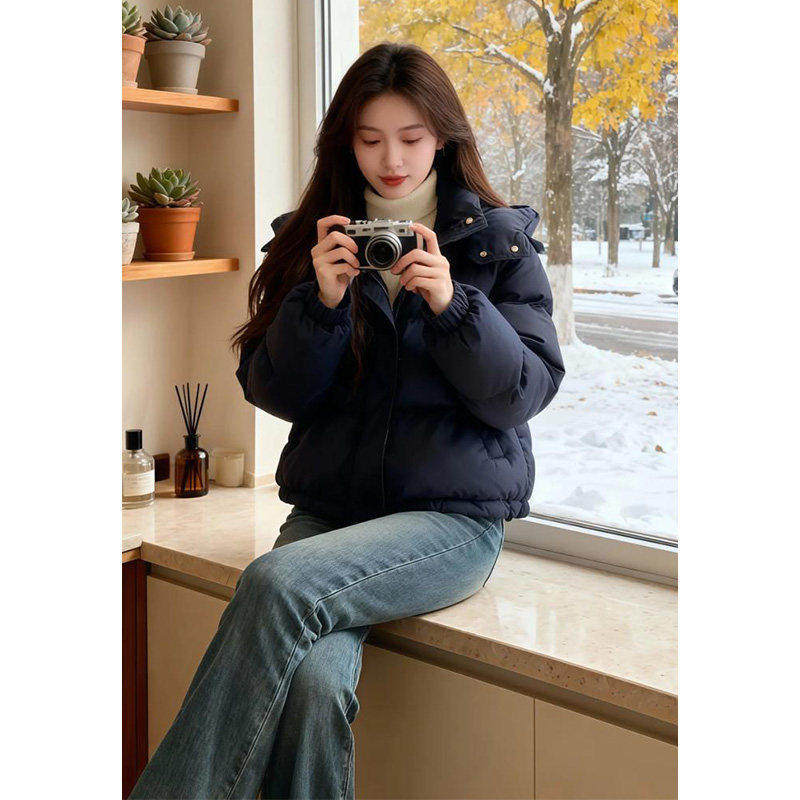 今年爆款连帽羽绒棉服女短款2025冬季设计感棉衣小个子面包服棉袄
