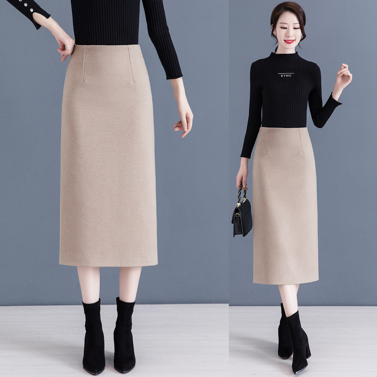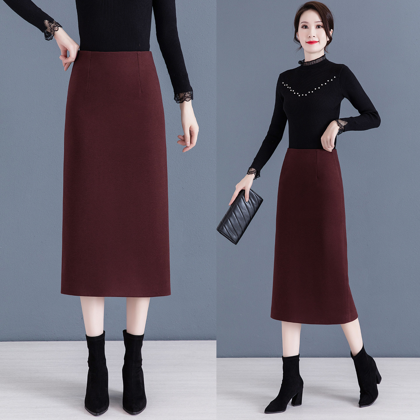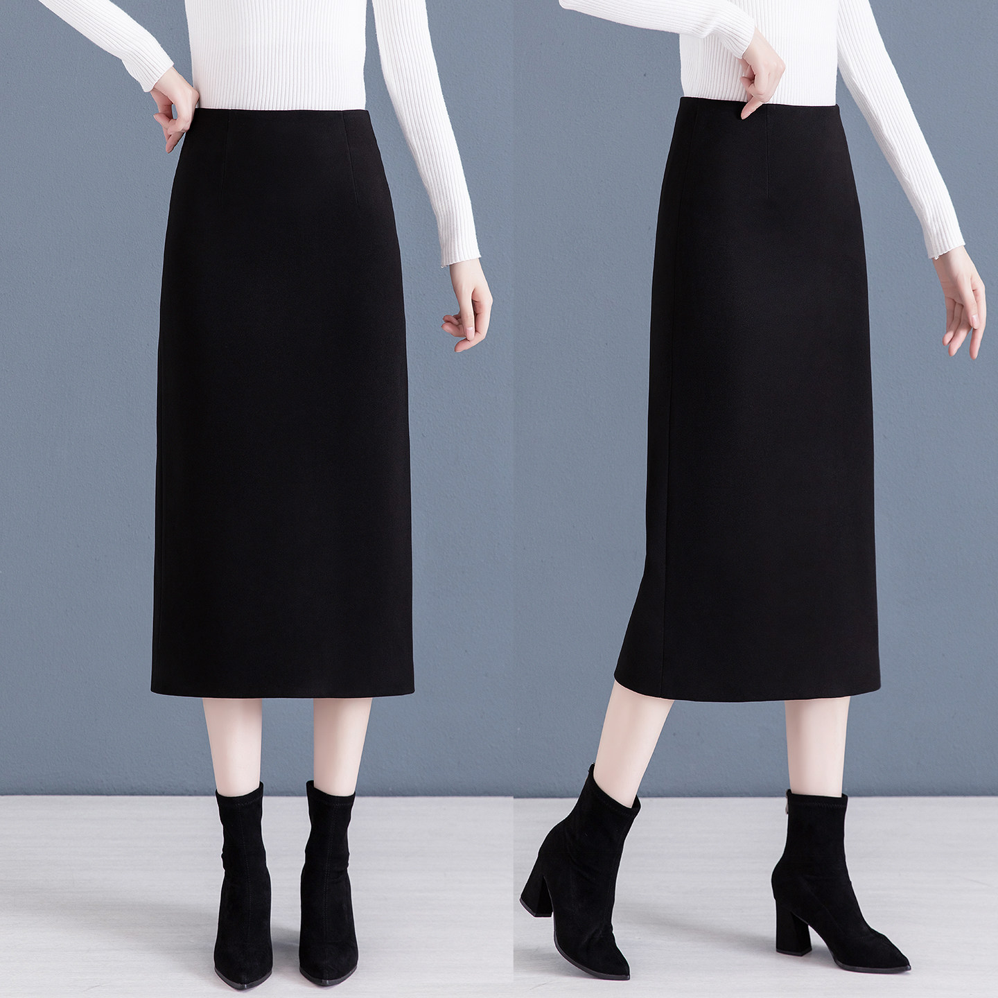 咖色毛呢半身裙女秋冬2025新款气质高腰开叉中长款一步包臀直筒裙