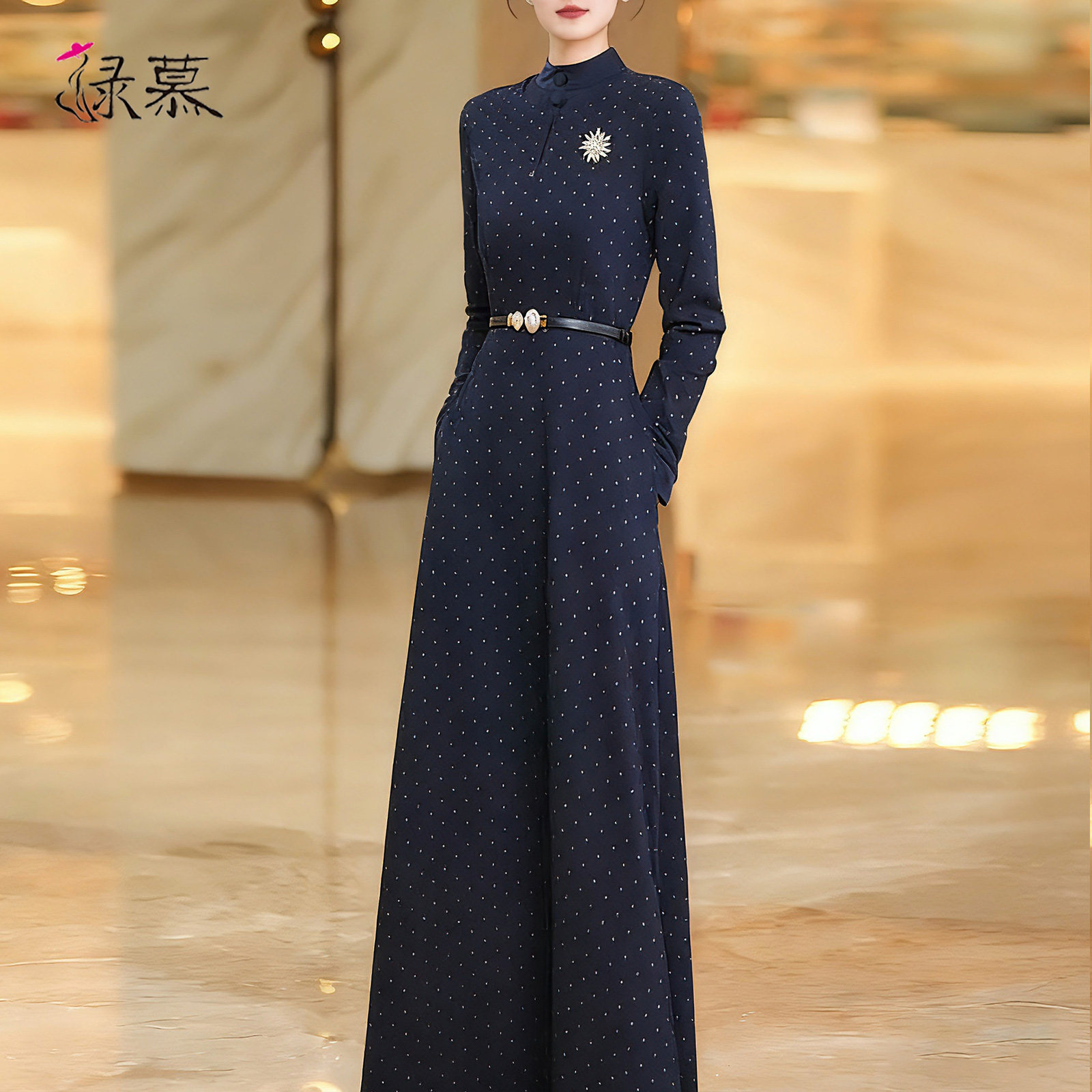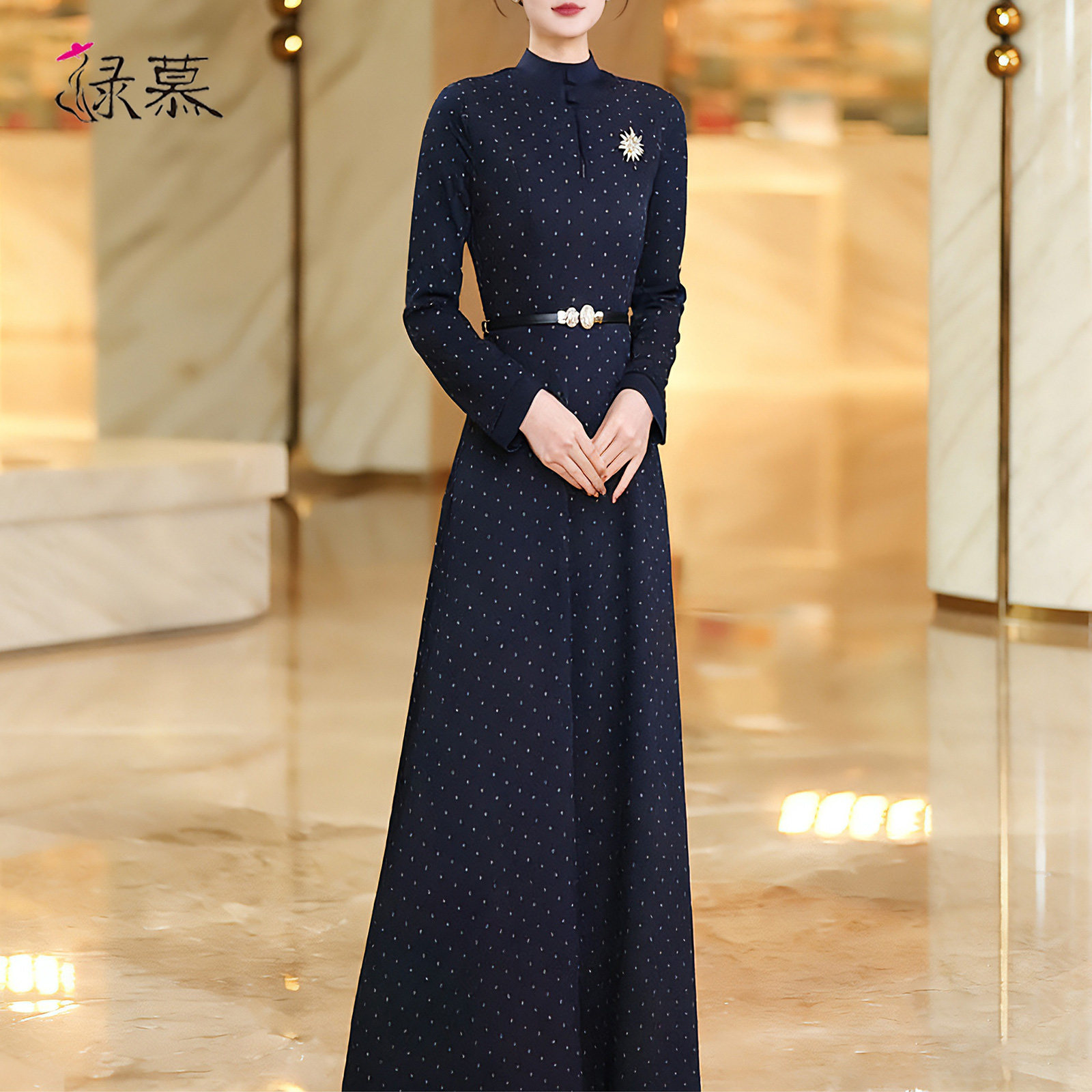 首页> 女装> 高级感假两件连衣裙2025秋冬新款设计感波点女高端修身显瘦长裙