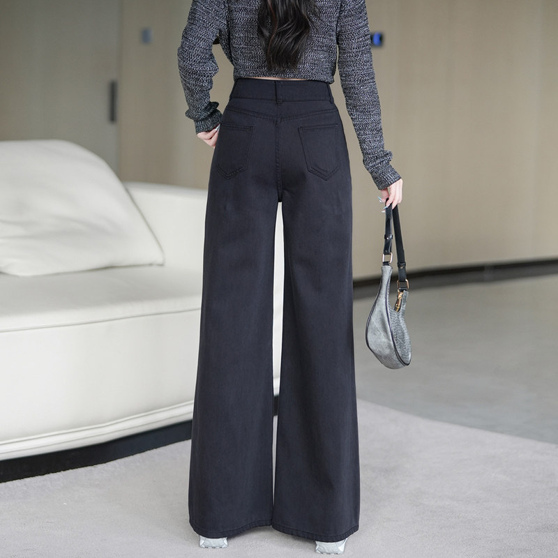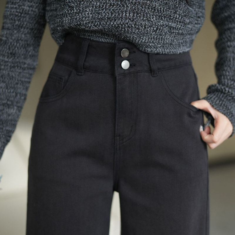 首页> 女装> 小个子150裤子加绒牛仔阔腿裤女秋冬显高保暖搭配复古蓝直筒长裤