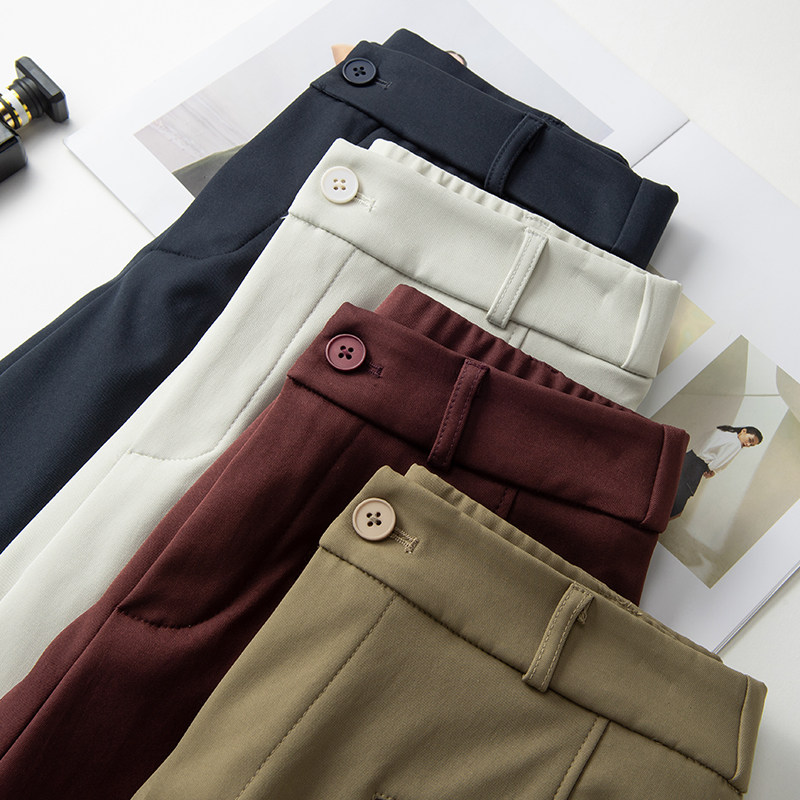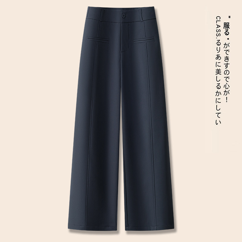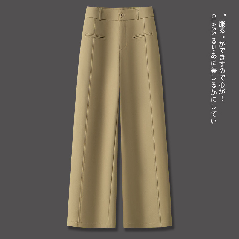 啄木鸟安可拉红直筒裤女秋季新款高腰宽松显瘦西装窄版阔腿裤子