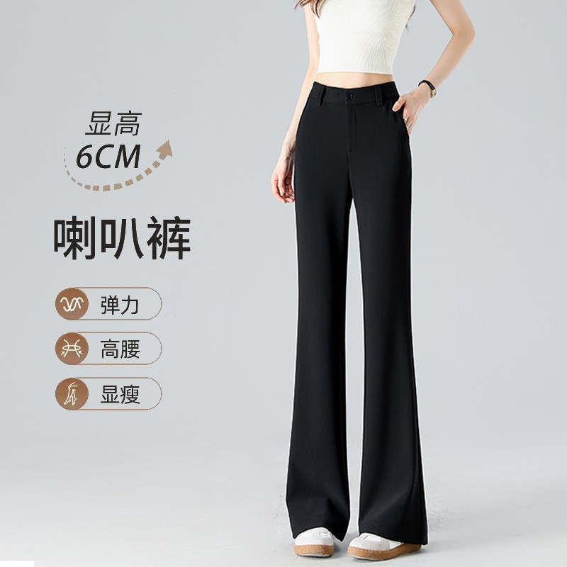 啄木鸟黑色西装微喇裤女新款秋冬高腰显瘦气质喇叭裤百搭加绒女裤