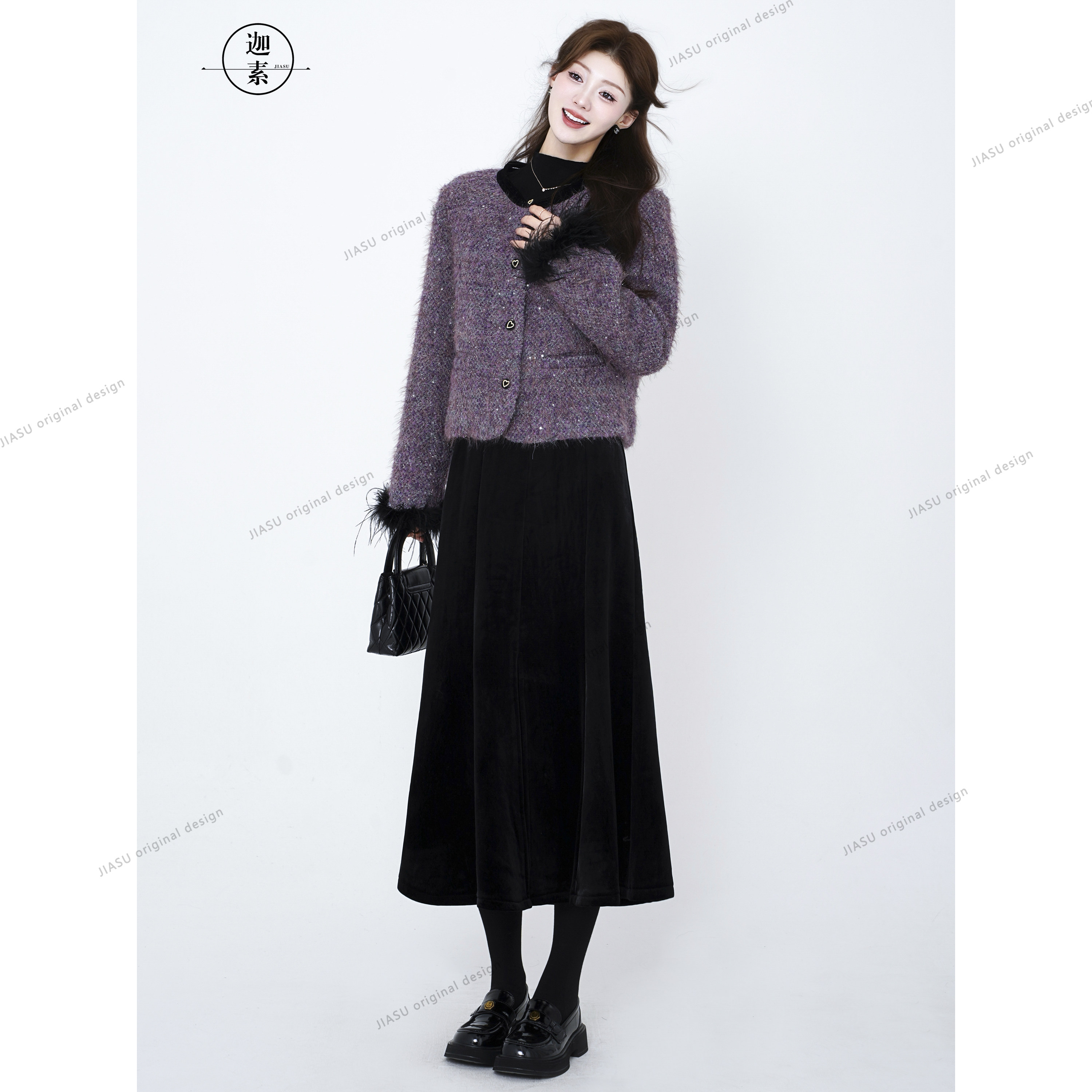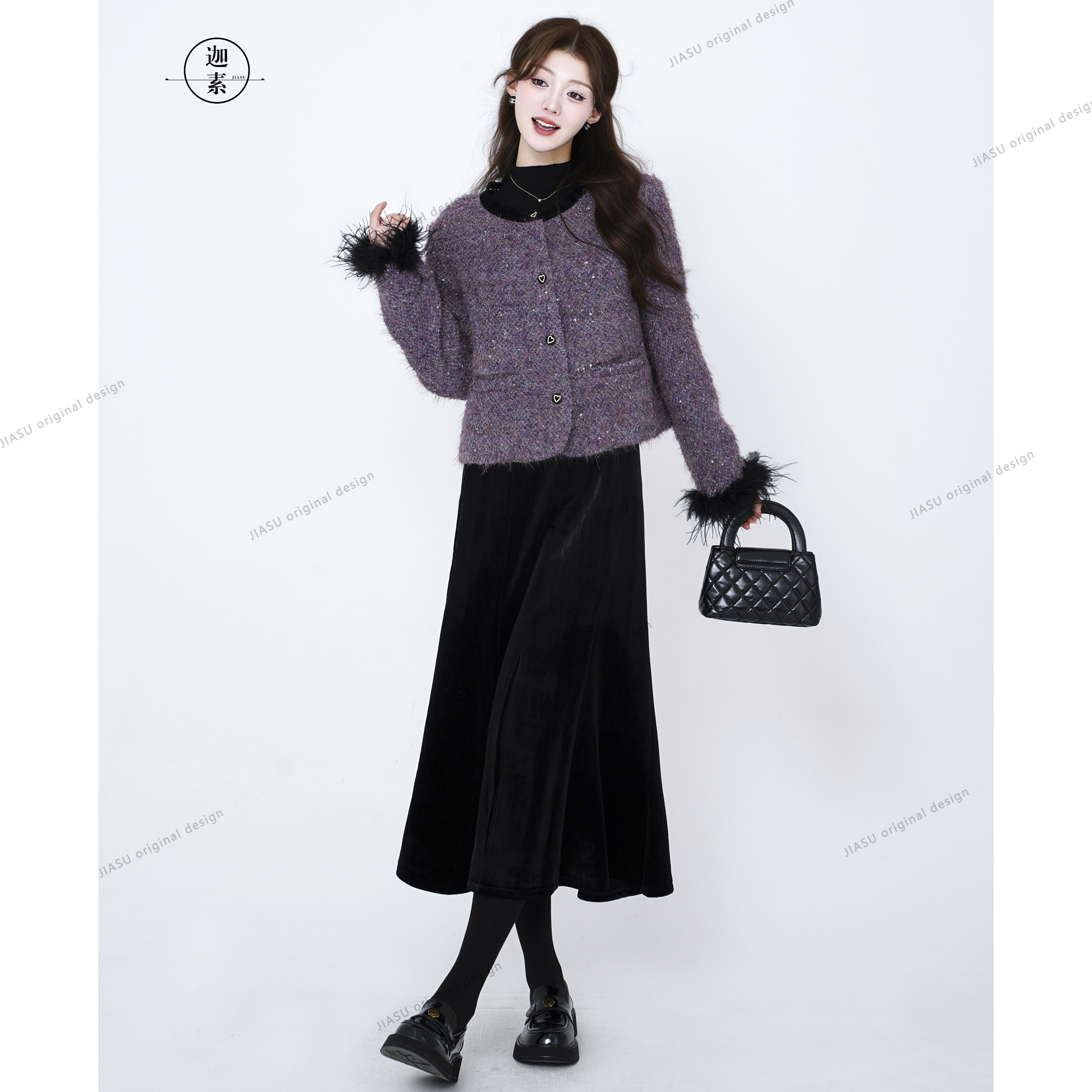 JIASU 【冬日星芒】订制花纱亮片小香风编织羊毛羽绒套装S595