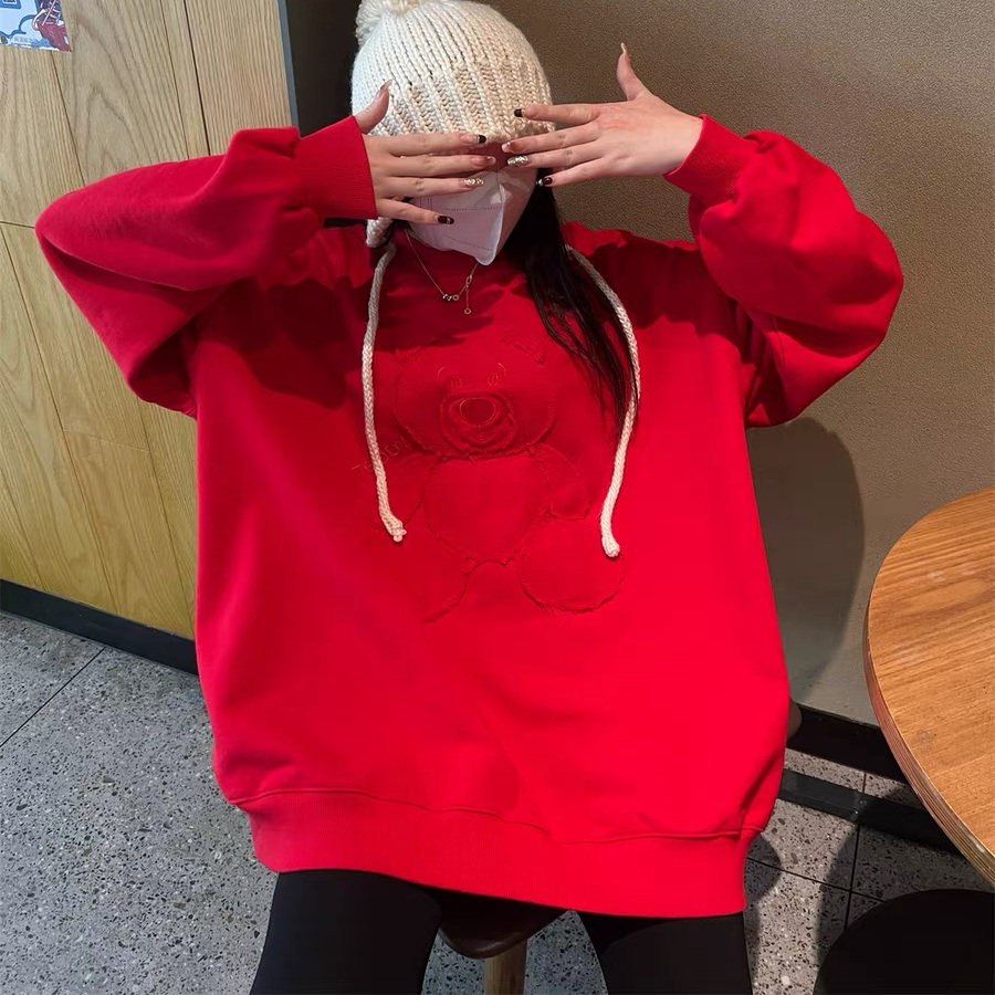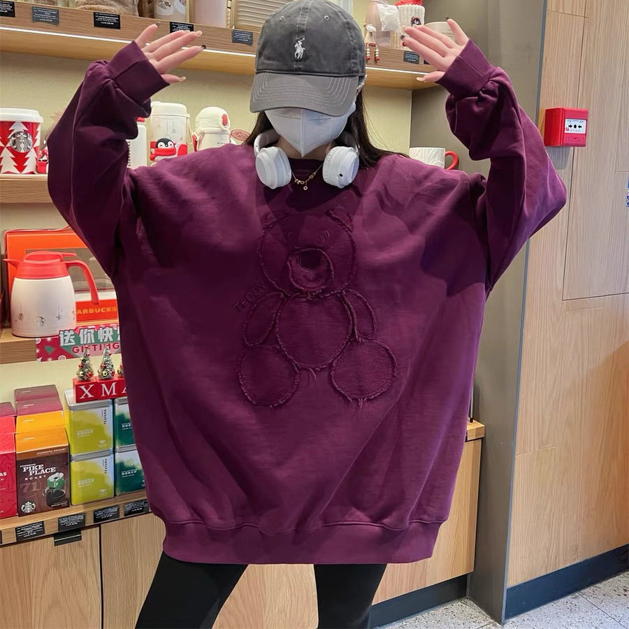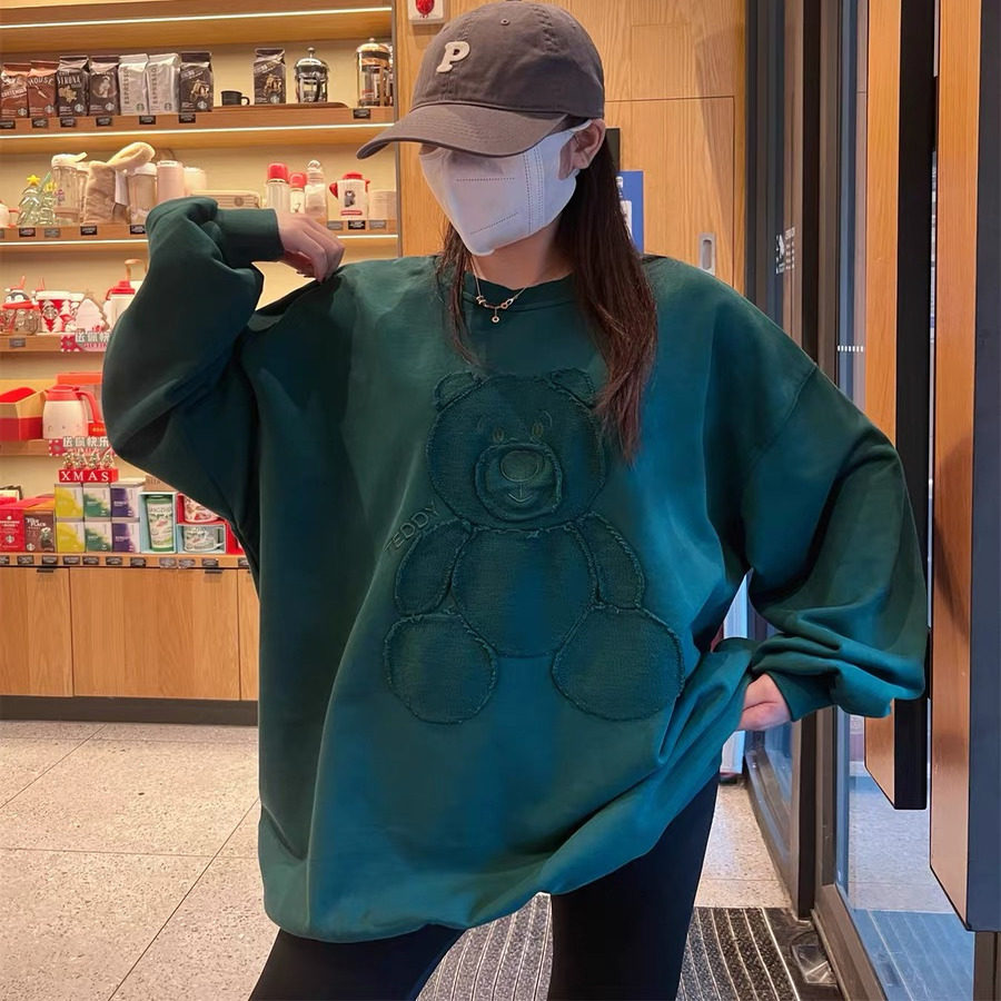 JL SUNFLOWER重工刺绣卡通大码卫衣女宽松慵懒风冬季加厚小熊外套