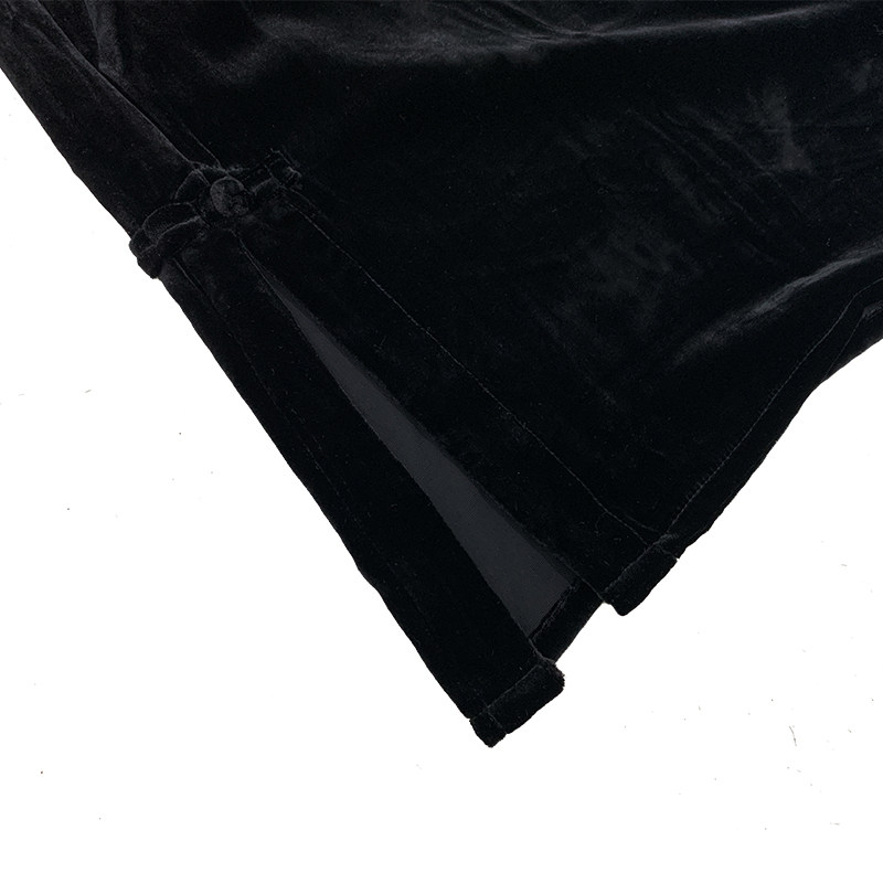【橙庐】原创101812新中式桑蚕丝丝绒盘扣短款半裙 气质一步裙