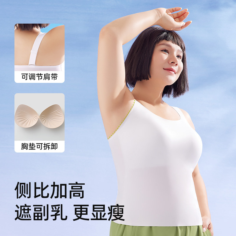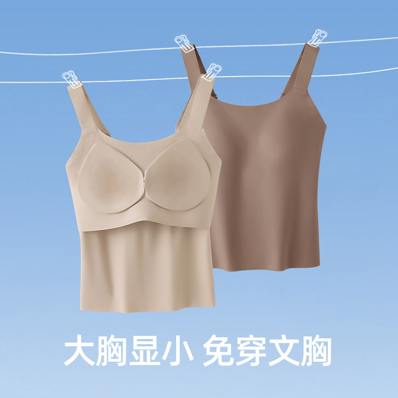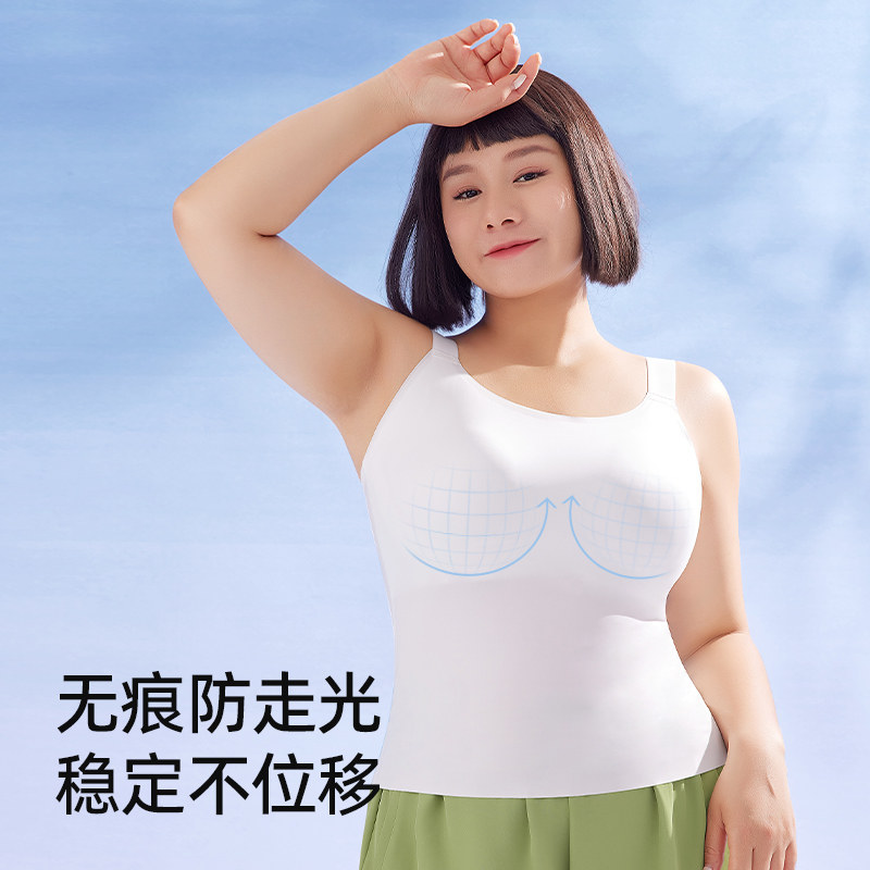 首页> 女装> 大码带胸垫吊带背心女内搭胖m200斤免穿文胸一体无痕美背打底上衣