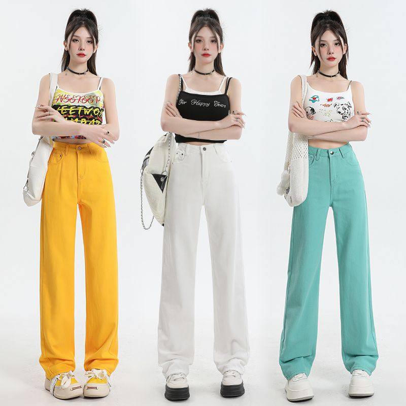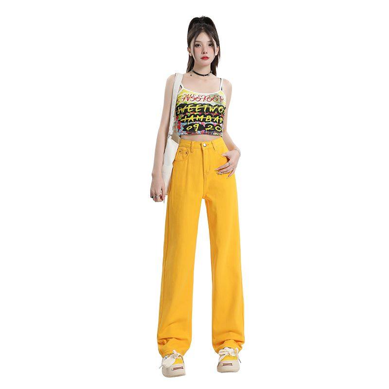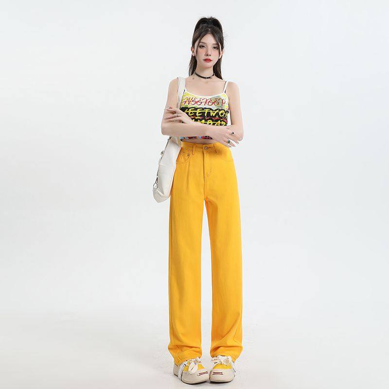 首页> 女装> 彩色窄版阔腿裤女洋气穿搭九分小个子黄色爆款秋季牛仔直筒拖地裤