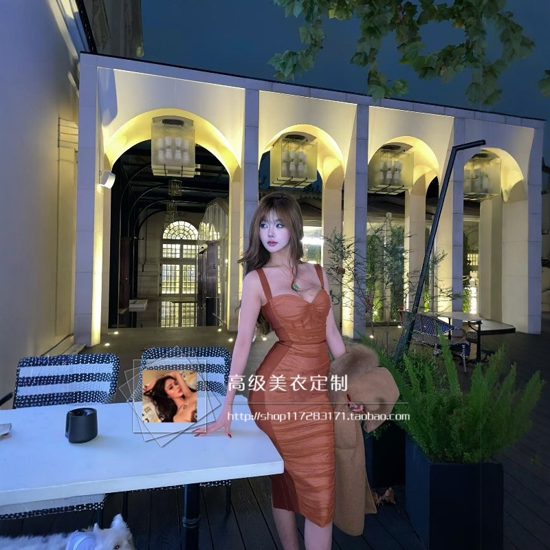 古埃及网纱拼接绷带裙~御姐高级性感吊带裹胸紧身显瘦包臀连衣裙