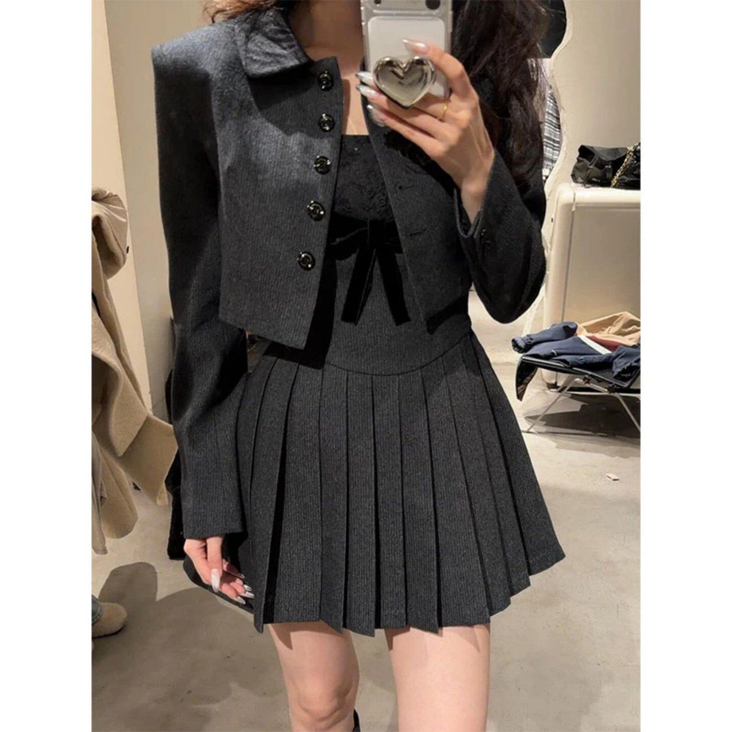 首页> 女装> 巨好看2026穿搭一整套小香风高级感短款外套修身打底衫吊带连衣裙