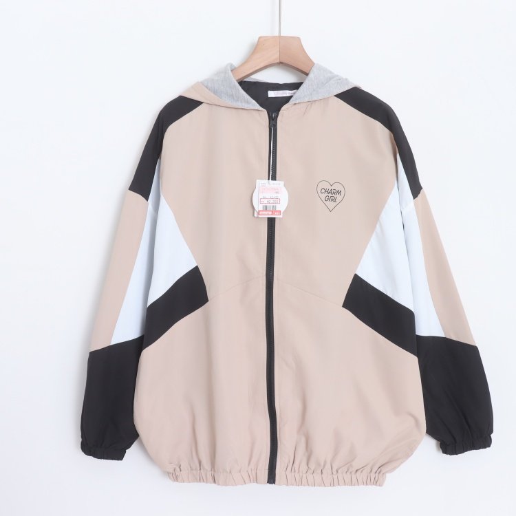 首页> 女装> D09061日单新款拉链宽松显瘦中性中大童撞色简洁休闲款连帽外套