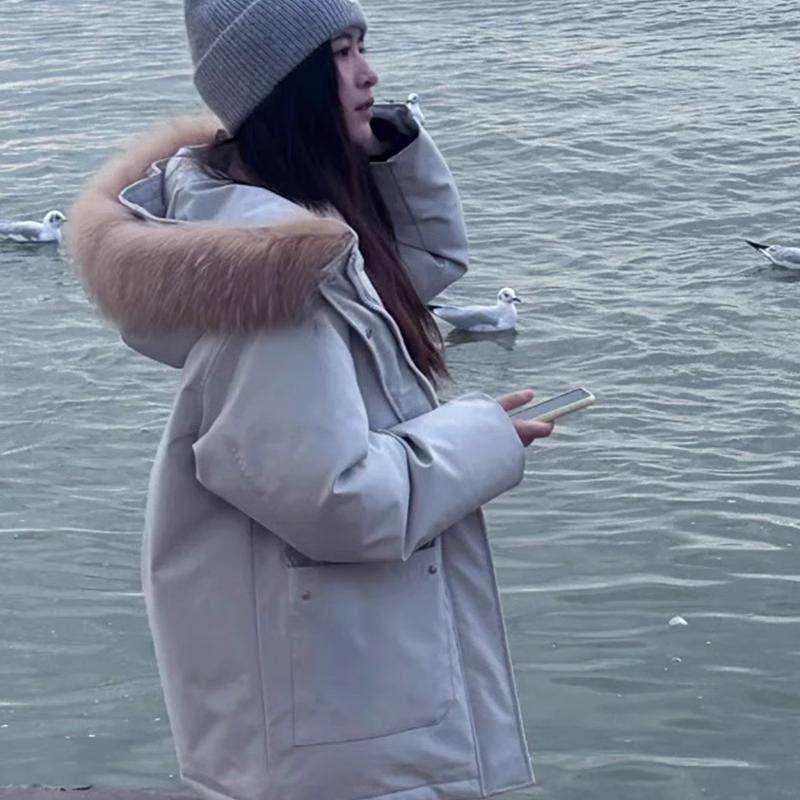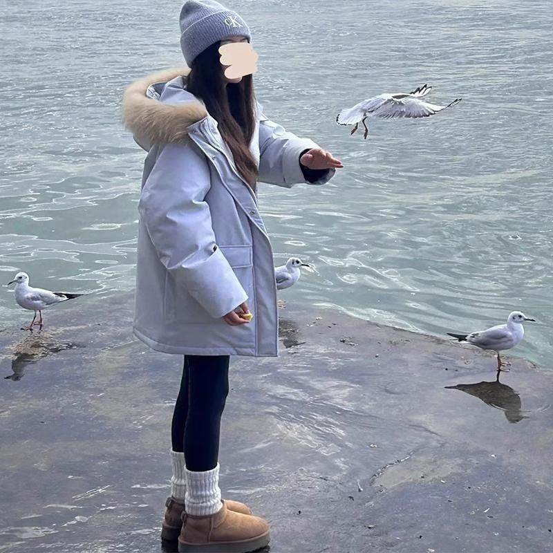 首页> 女装> LILY MOST蓝色工装派克羽绒服2025新款女中长款貉子毛白鸭绒冬装