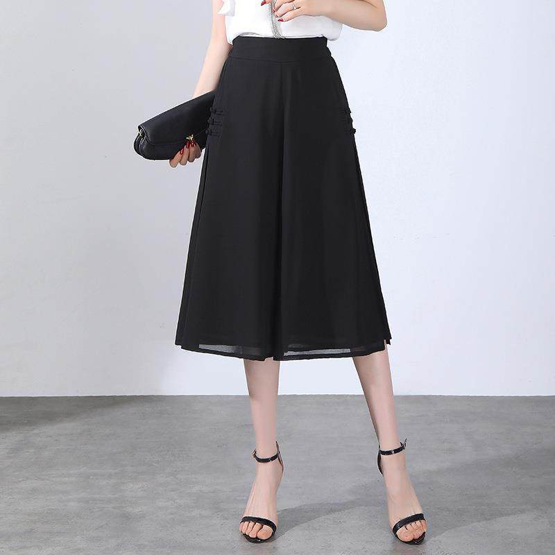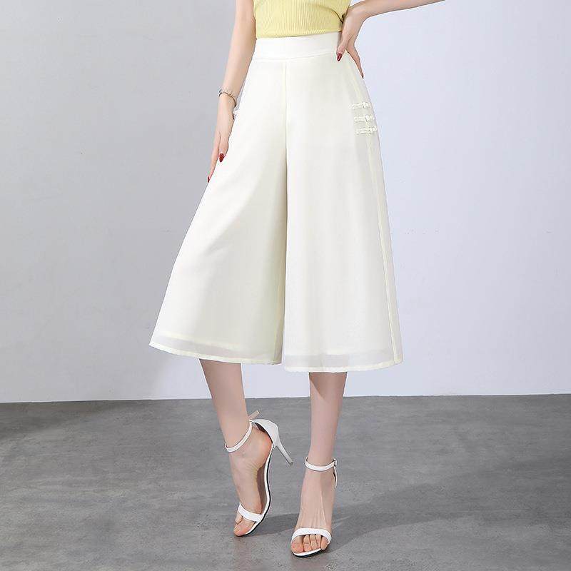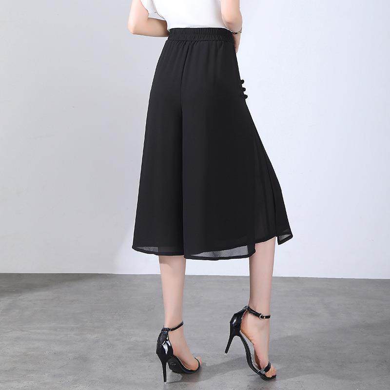 雪纺韩版高腰时尚大脚裙裤女2024夏季新款宽松显瘦休闲裤七分裤
