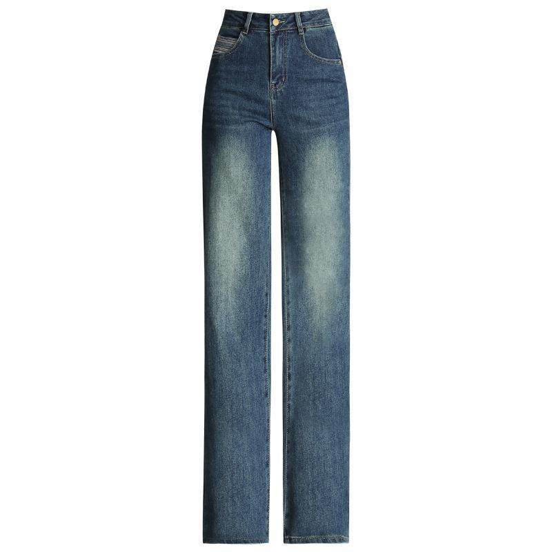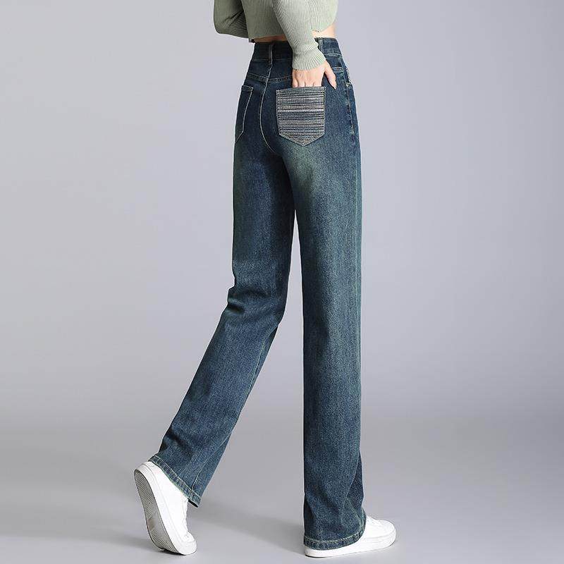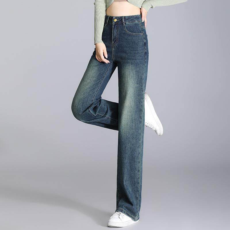牛仔时尚复古蓝阔腿裤女2024秋季新款韩版高腰直筒垂感休闲长裤