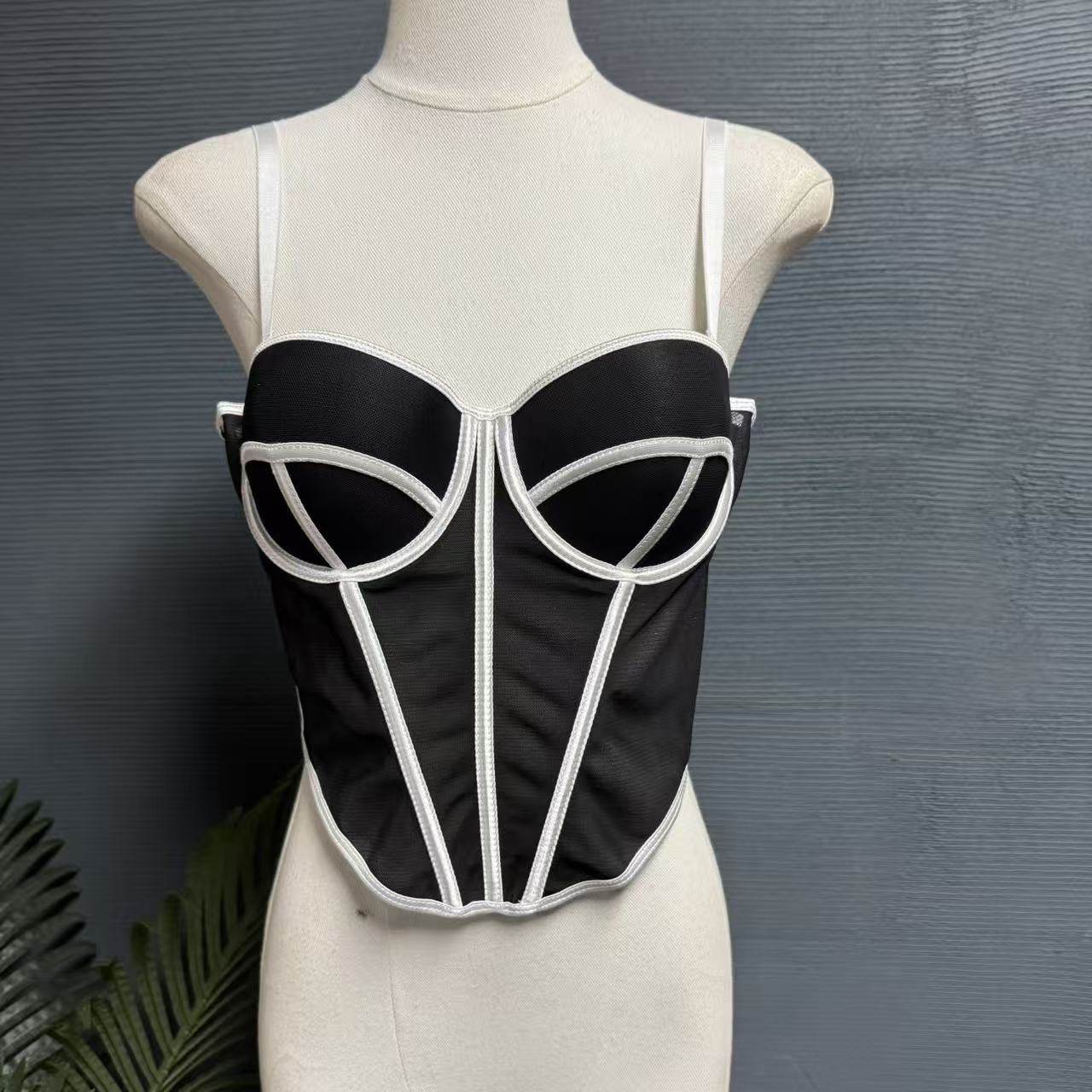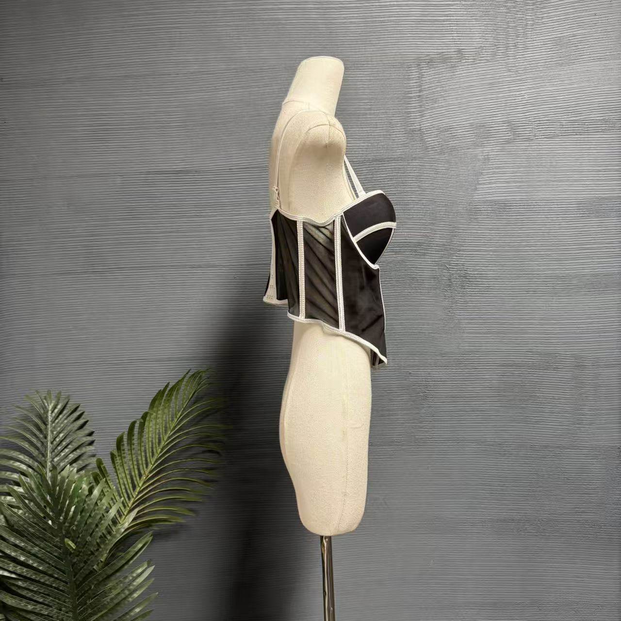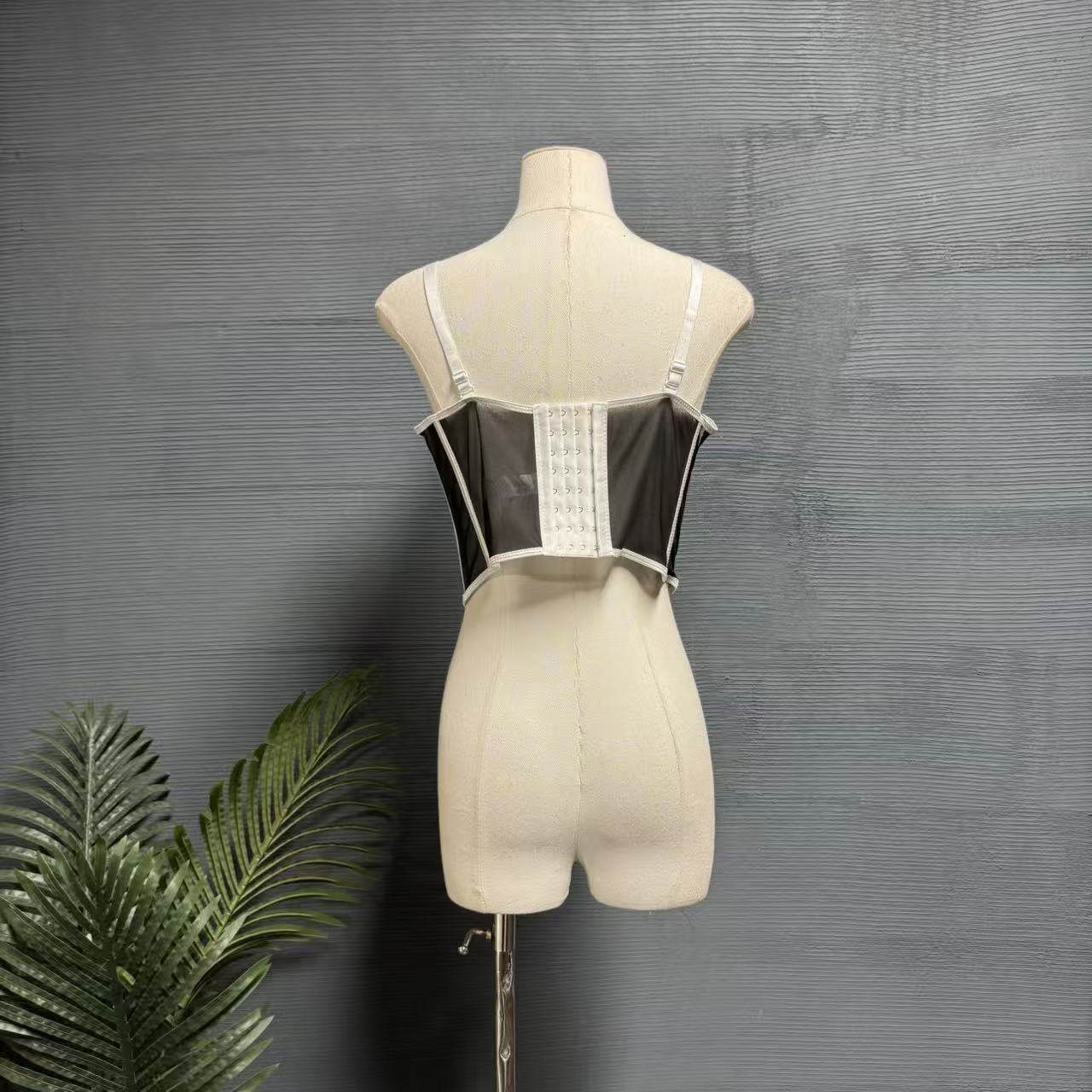 镜服饰2026新款性感鱼骨抹胸女吊带露背收腰塑身短款上衣1427