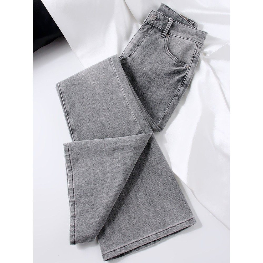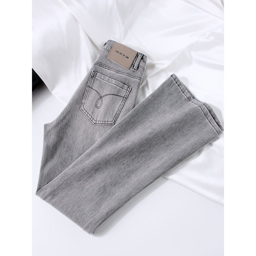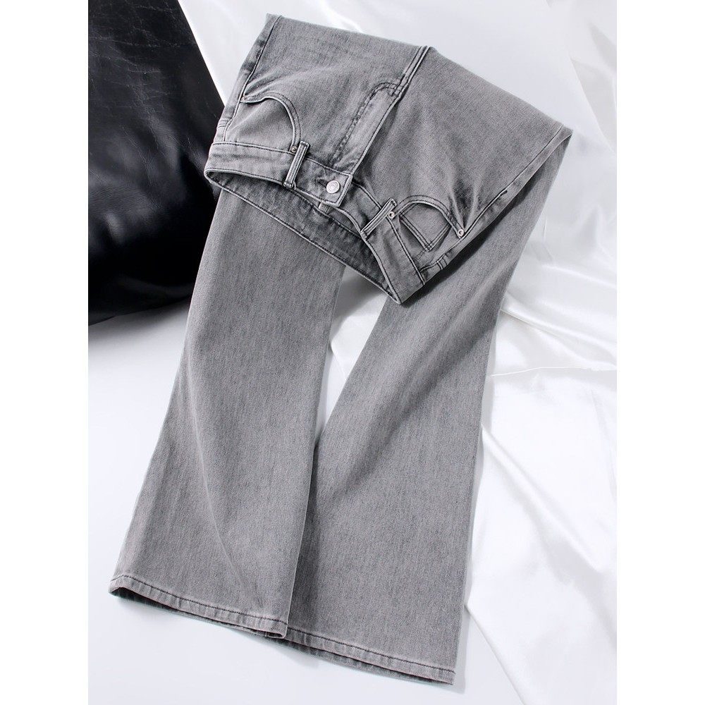 简约灰色系 |微喇叭牛仔裤女浅灰色2025秋冬季新款高腰显瘦四面弹