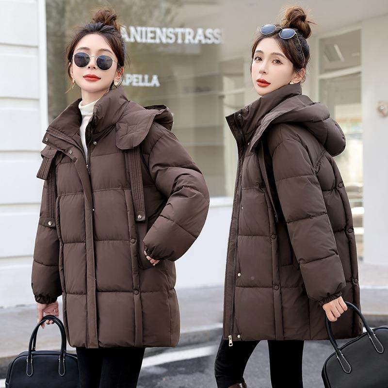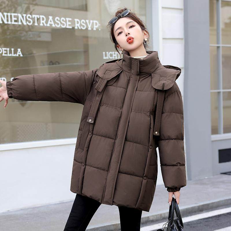 555爆款款连帽绒棉服中年女装时尚冬季加厚羽套棉袄外中长棉衣