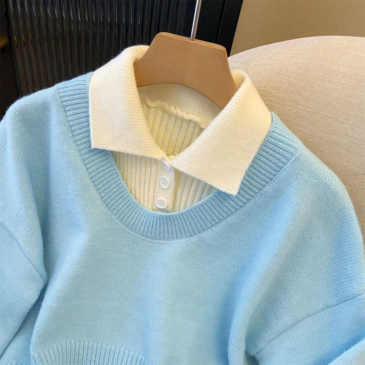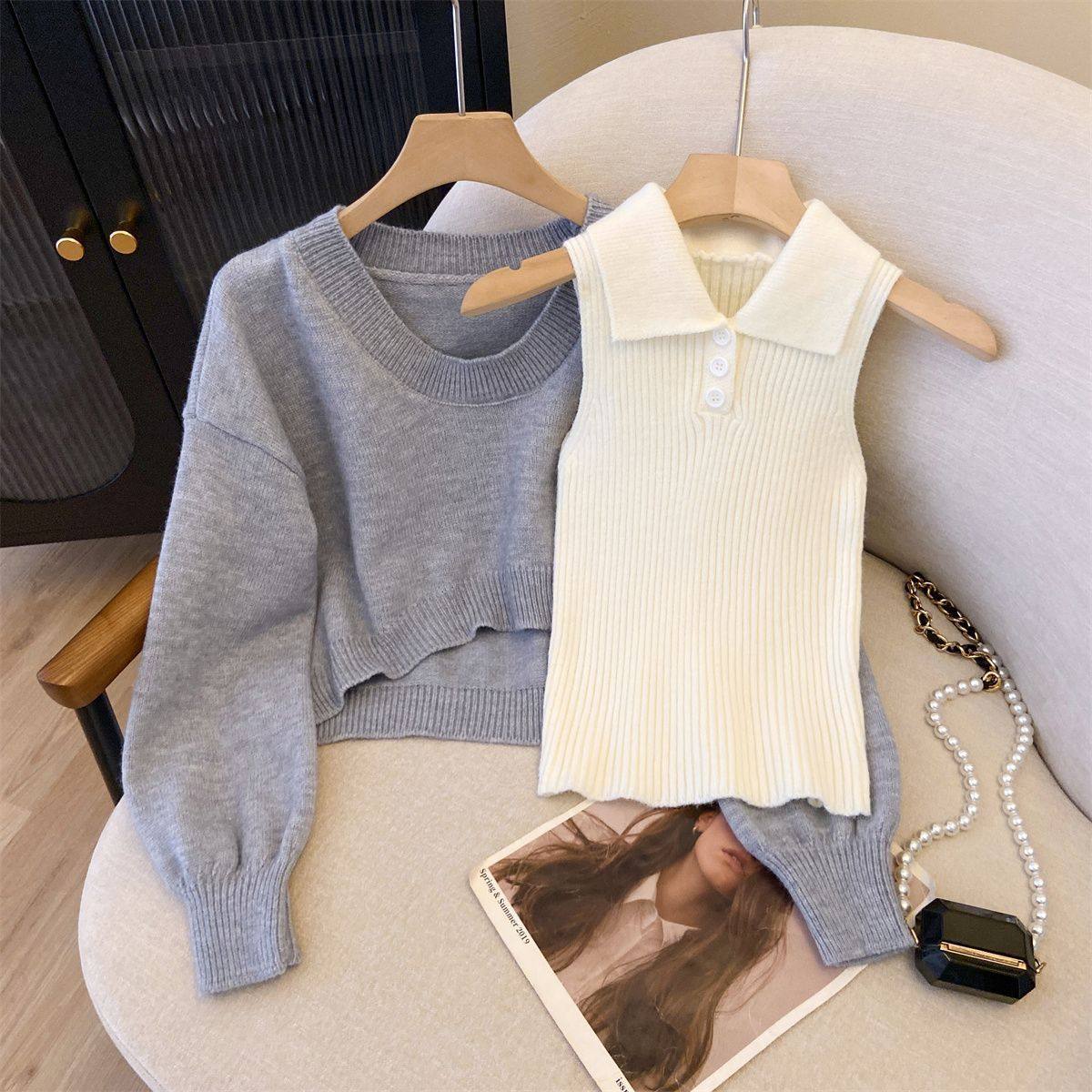 秋冬慵懒两件套毛衣2024年减龄洋气学院风POLO领针织小众设计上衣