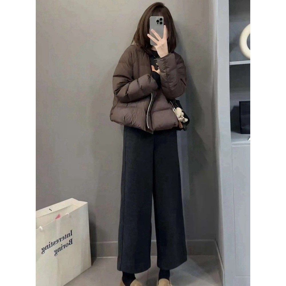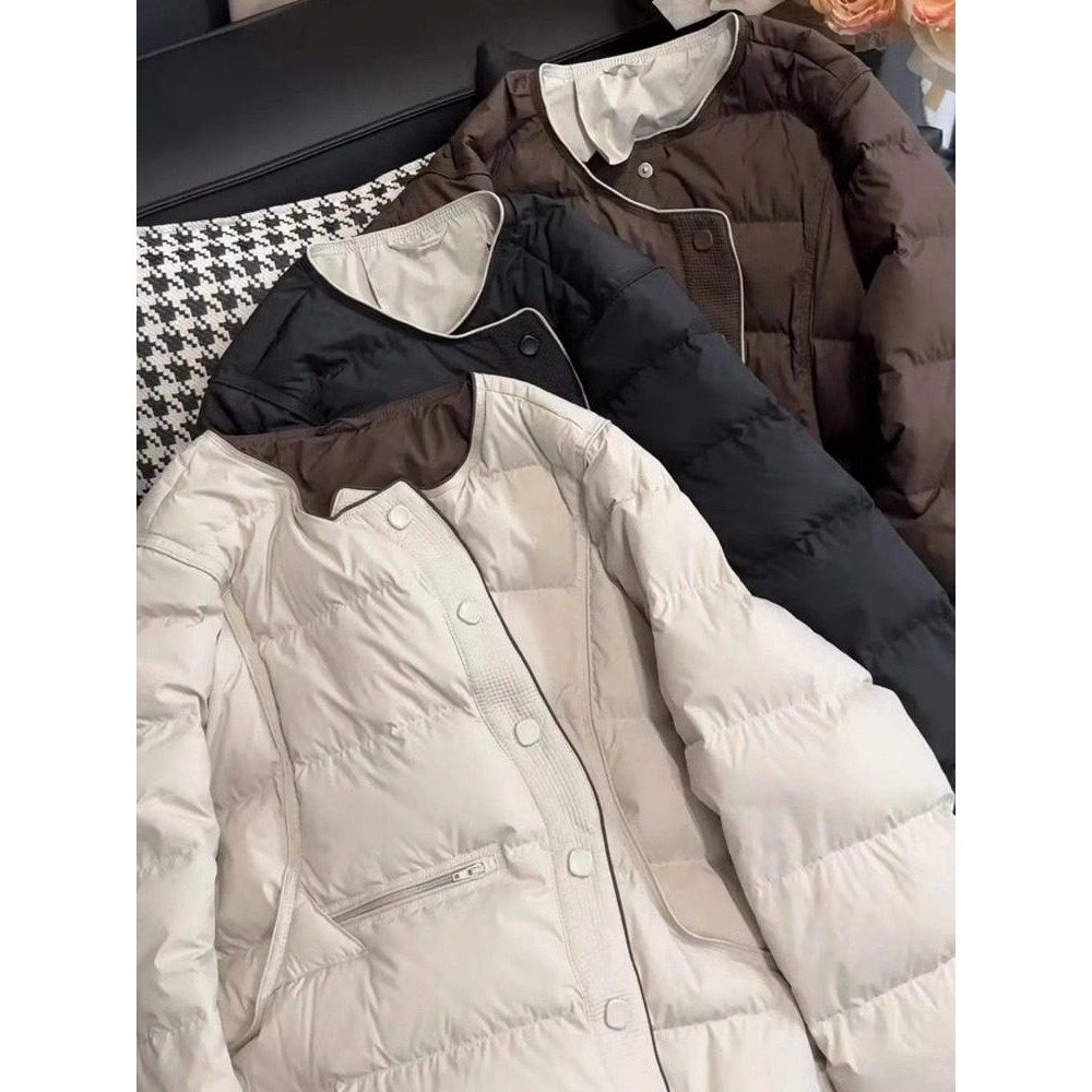 米白色洋气短款羽绒服女款2025秋冬新款轻薄面包服无领小个子外套