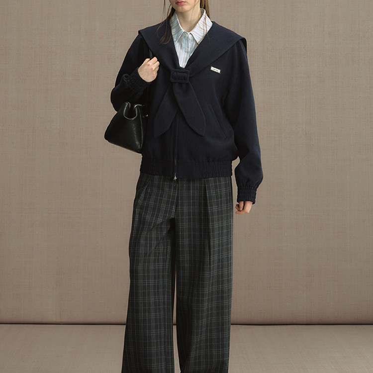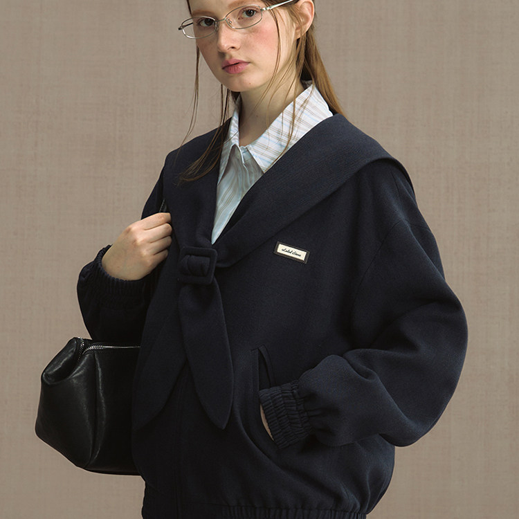 首页> 女装> 雾蓝水手 学院风复古宽松海军领夹克女2025秋季新款通勤短款外套