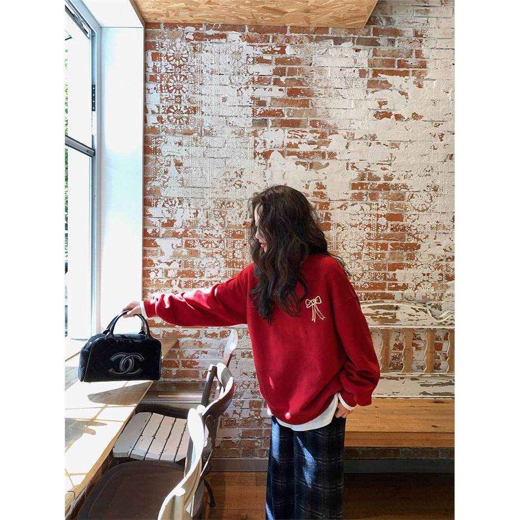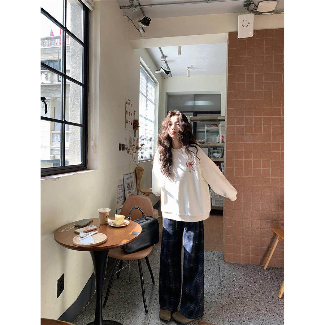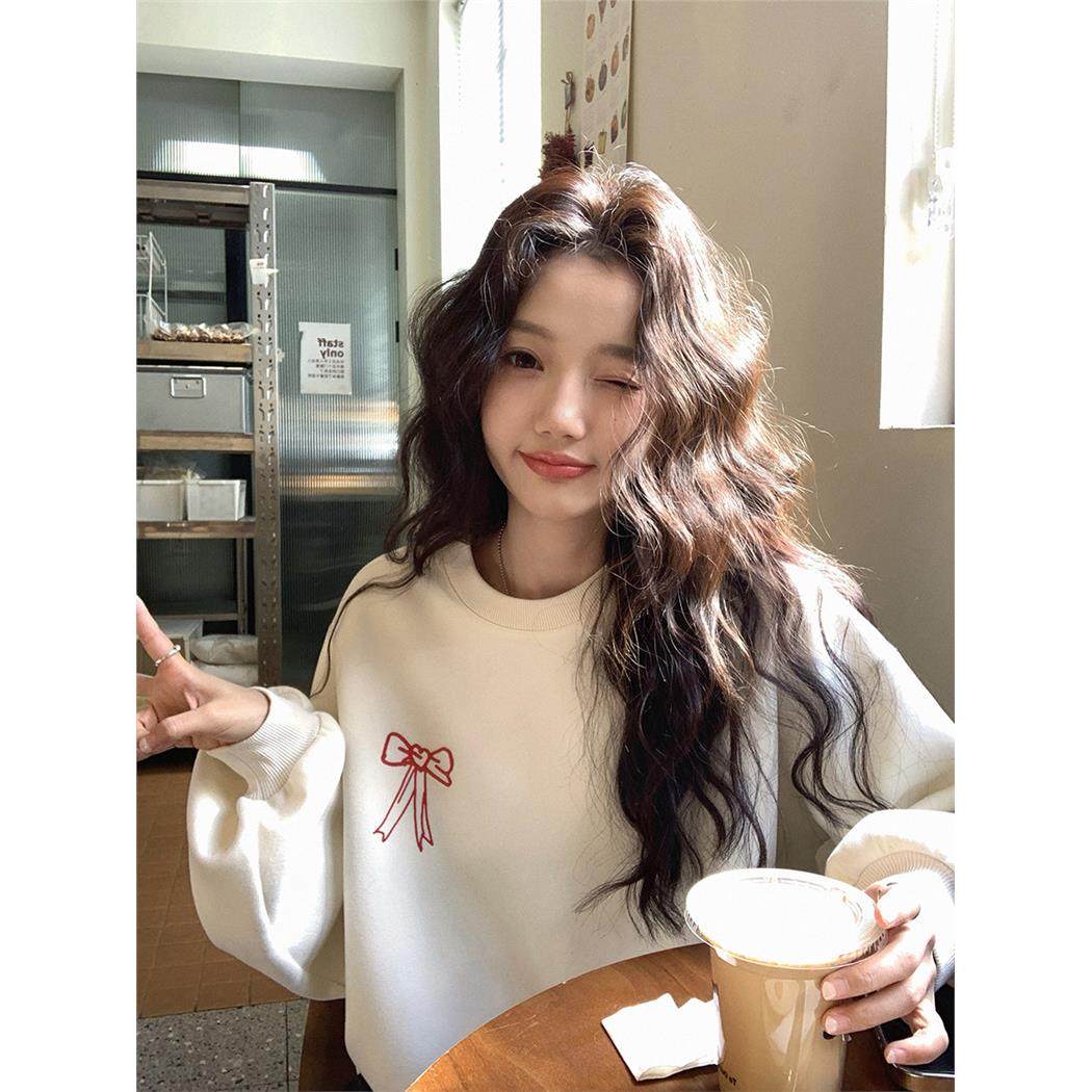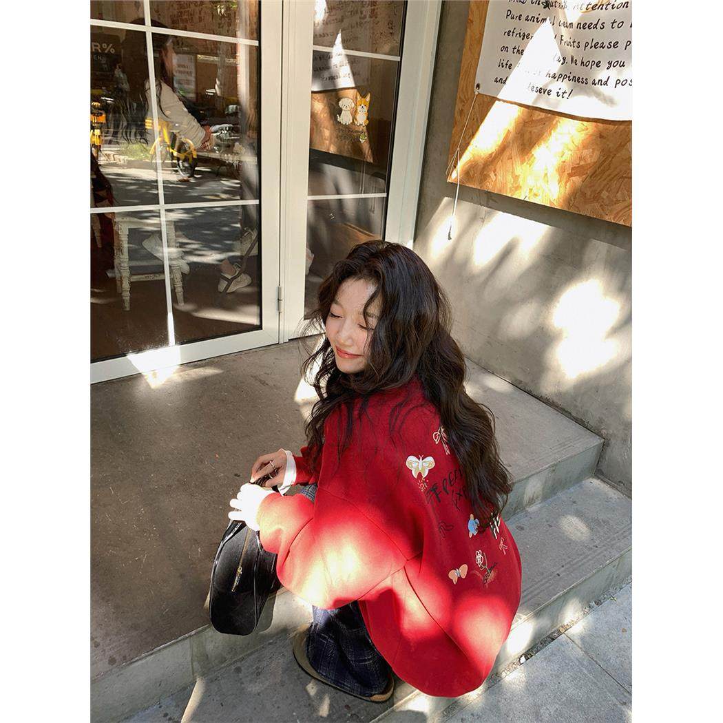 张贝贝设计感休闲童趣涂鸦卫衣女减龄保暖圆领上衣
