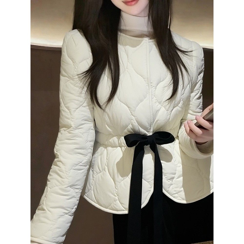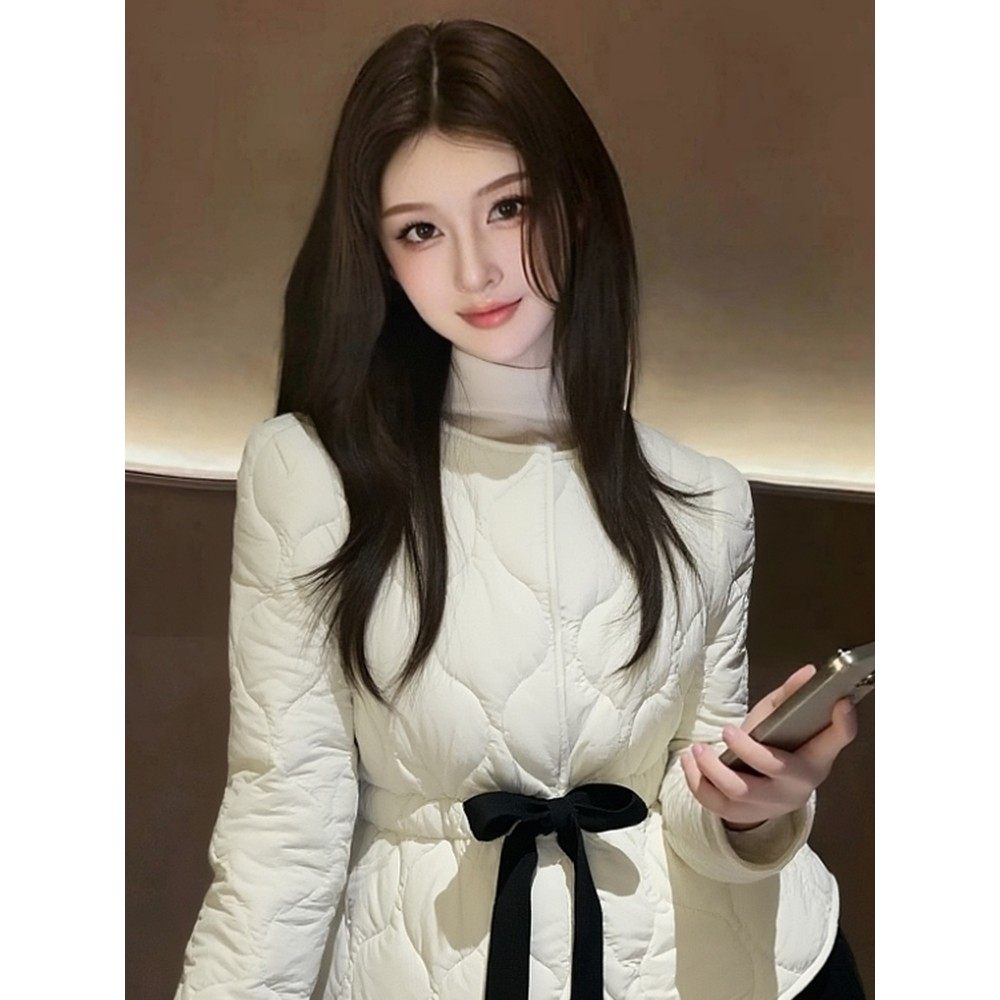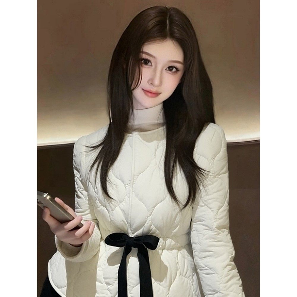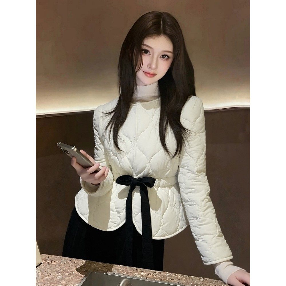 2025新款今年流行爆款轻薄小羽绒服白色蝴蝶结收腰棉服外套女冬季