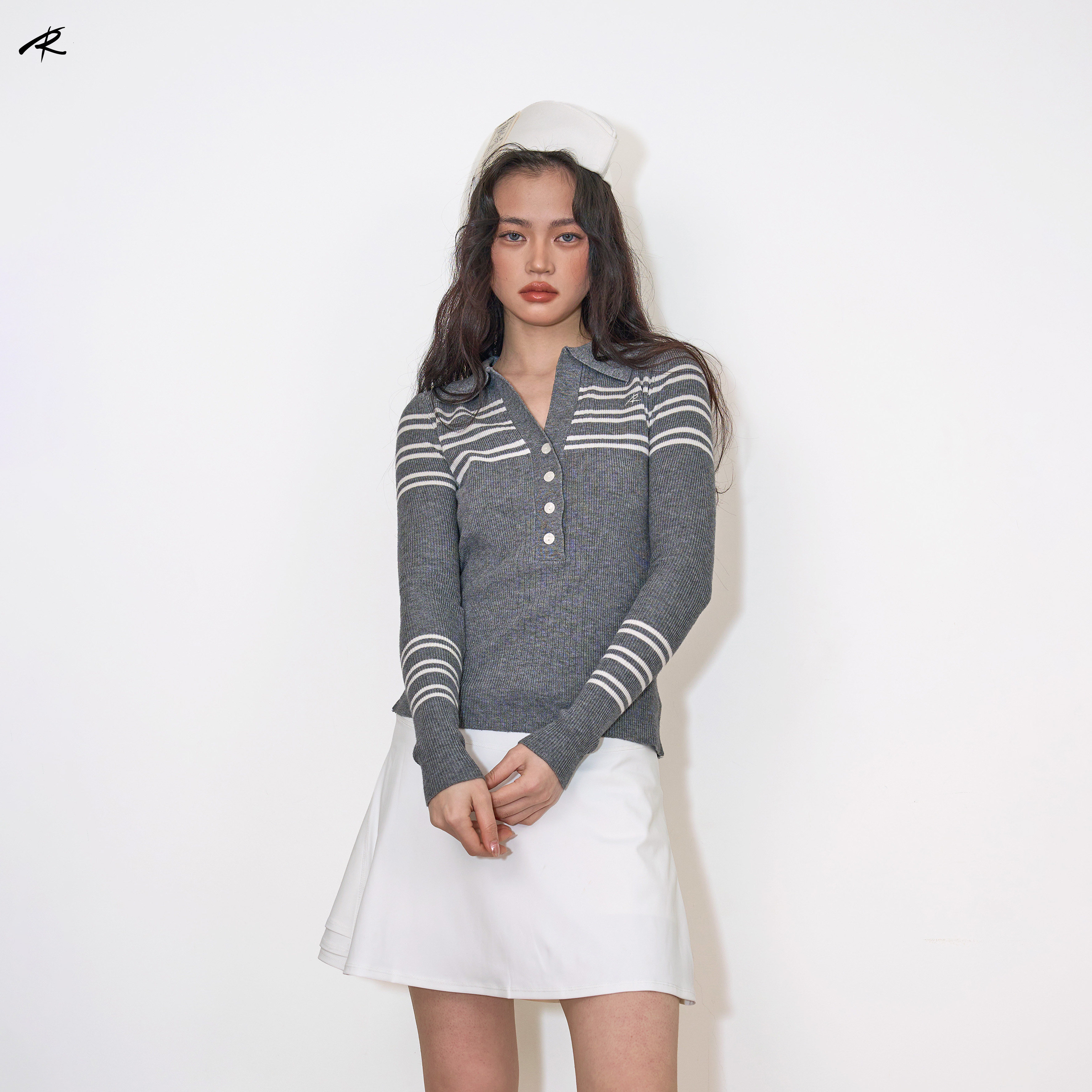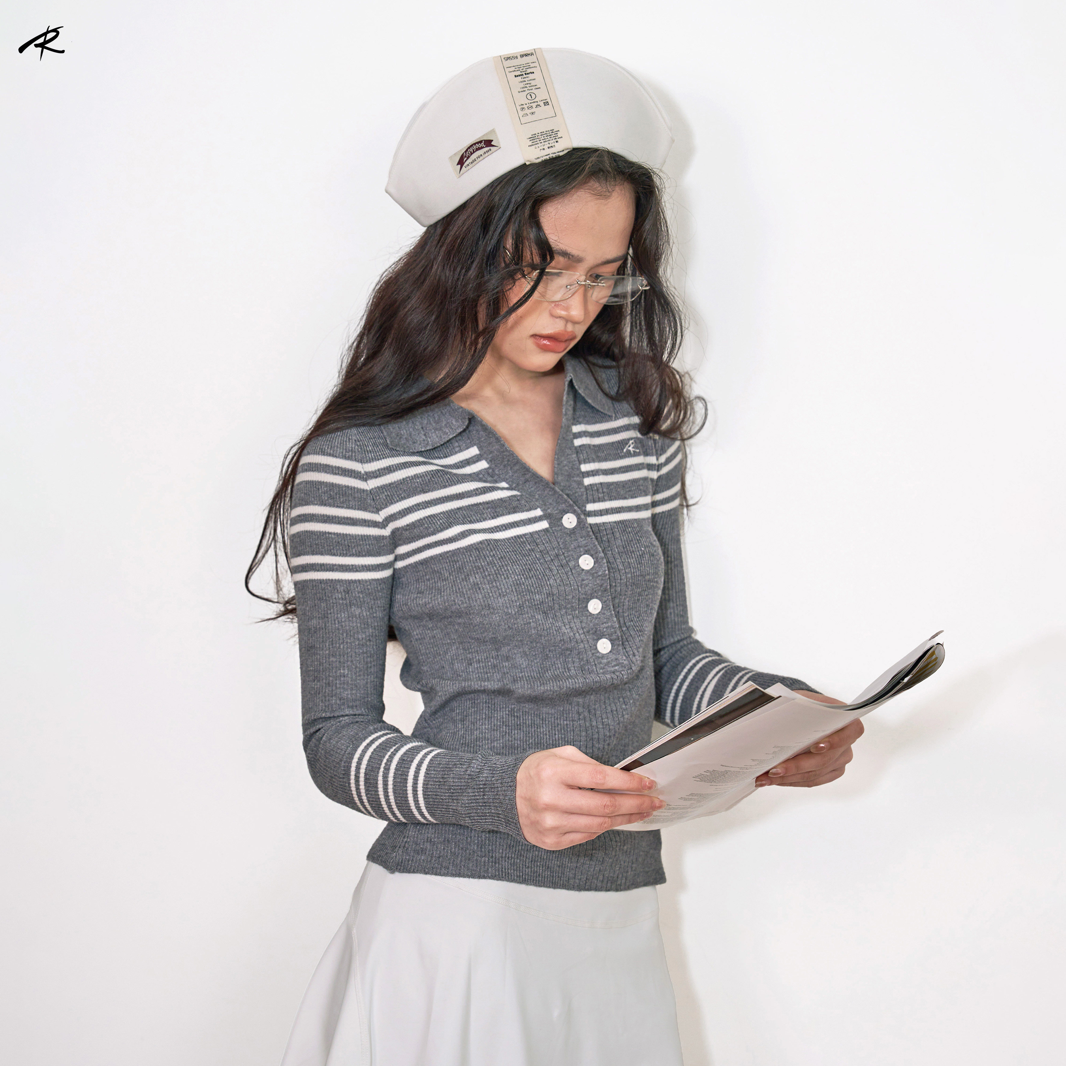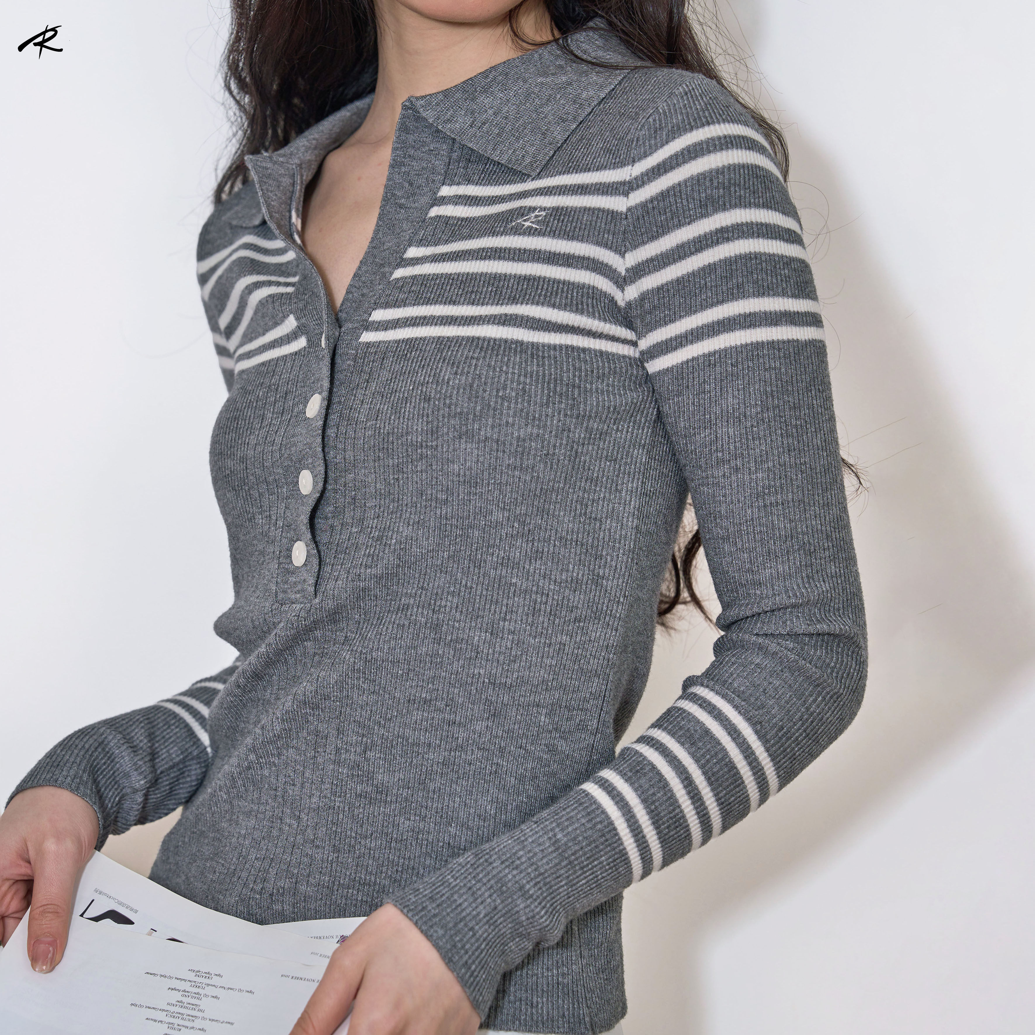 RIP THE TIE 灰色Polo打底衫春秋针织长袖V领显瘦百搭休闲上衣