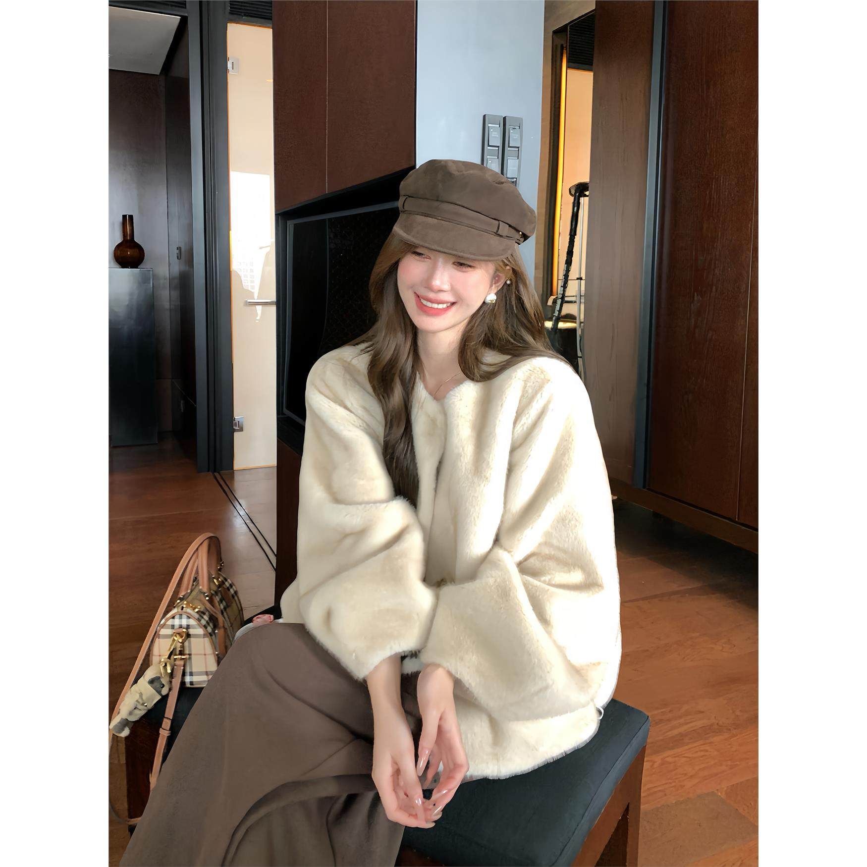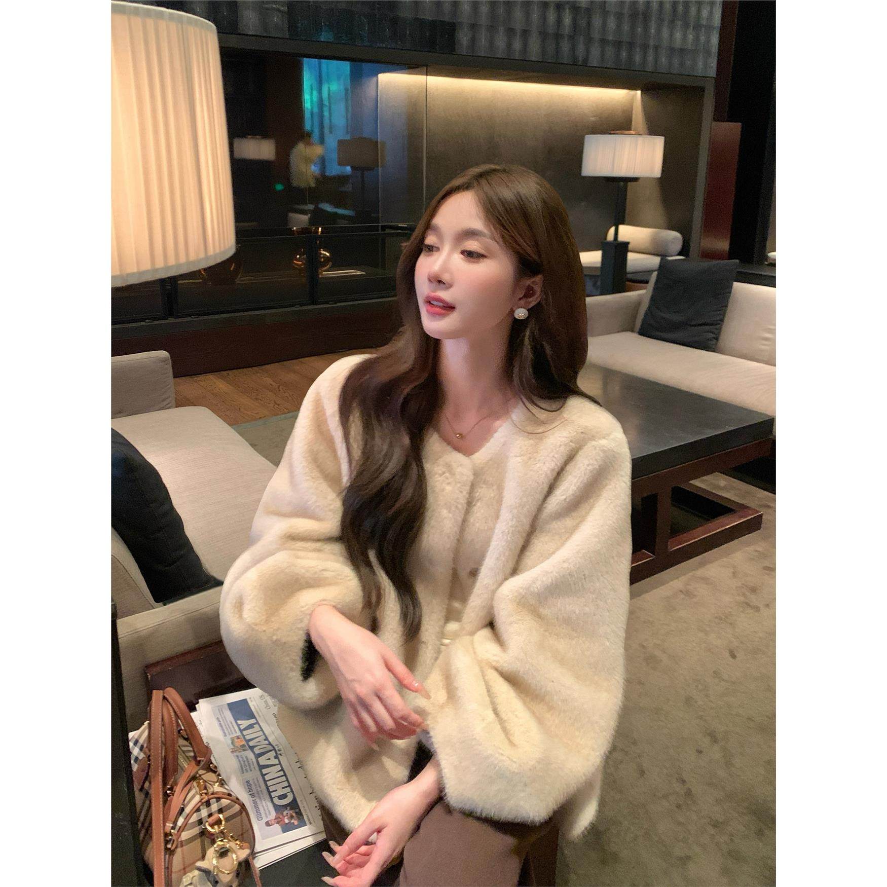 LMOMO 中古风彷水貂短款环保貂皮大衣毛毛皮草外套女2025新款秋冬