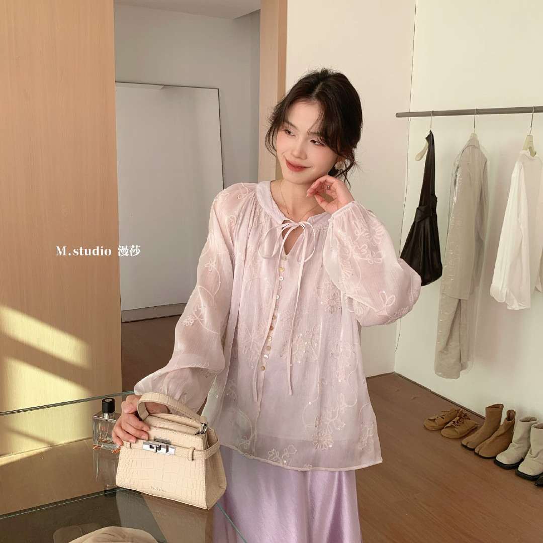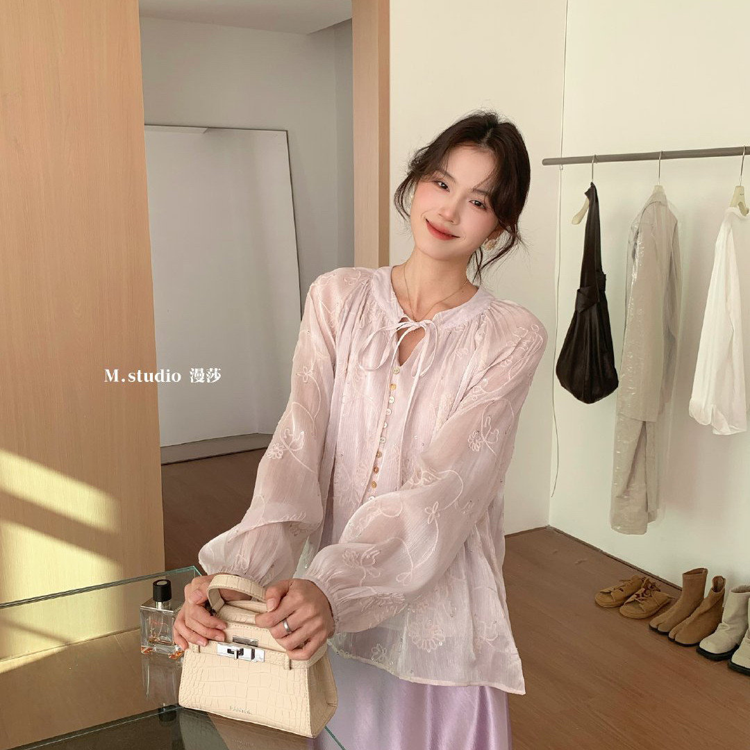26年早春清风皎月高定面料早春淑女气质系列小衫